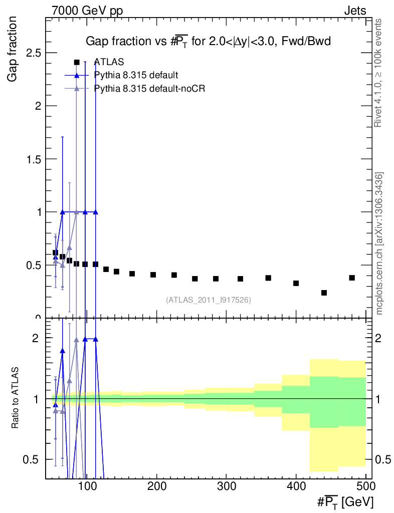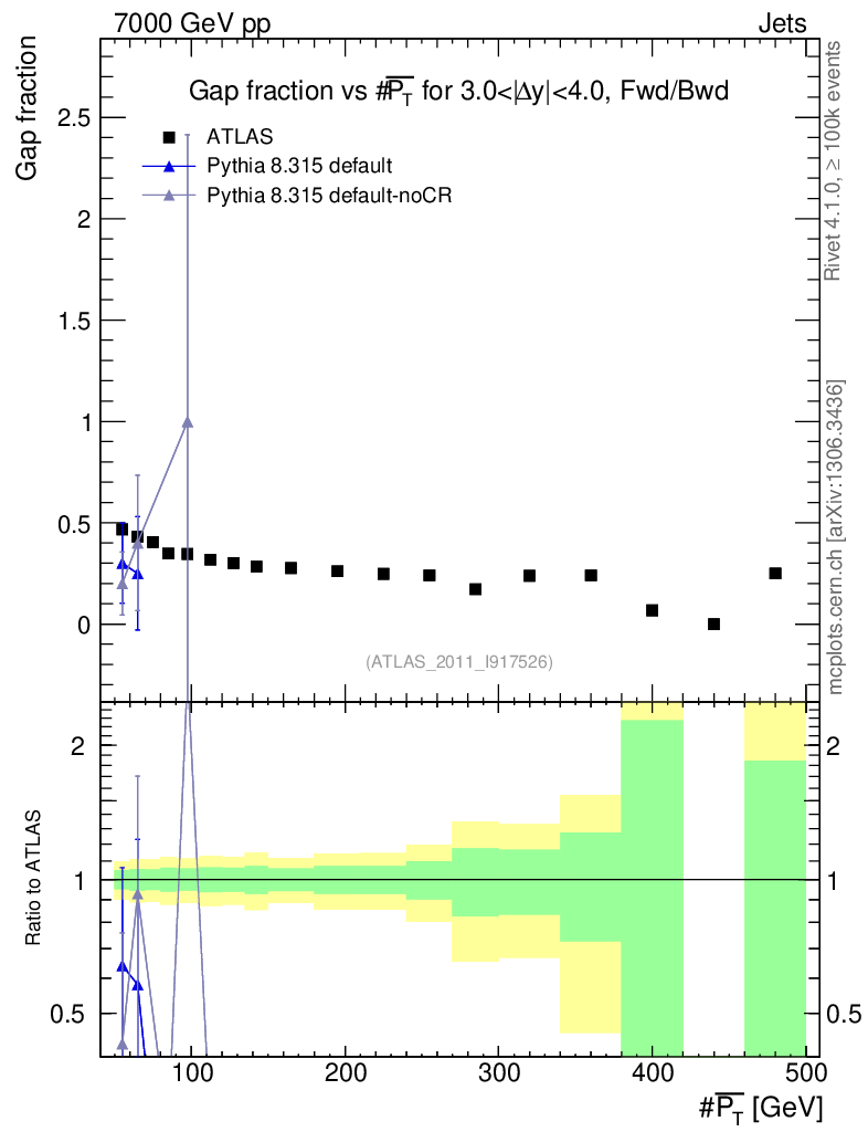 Jets : Jets + Veto : Gap fraction vs pT (FB)