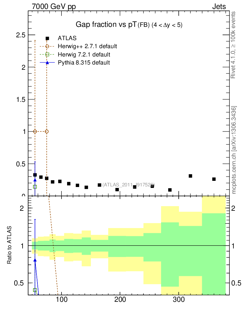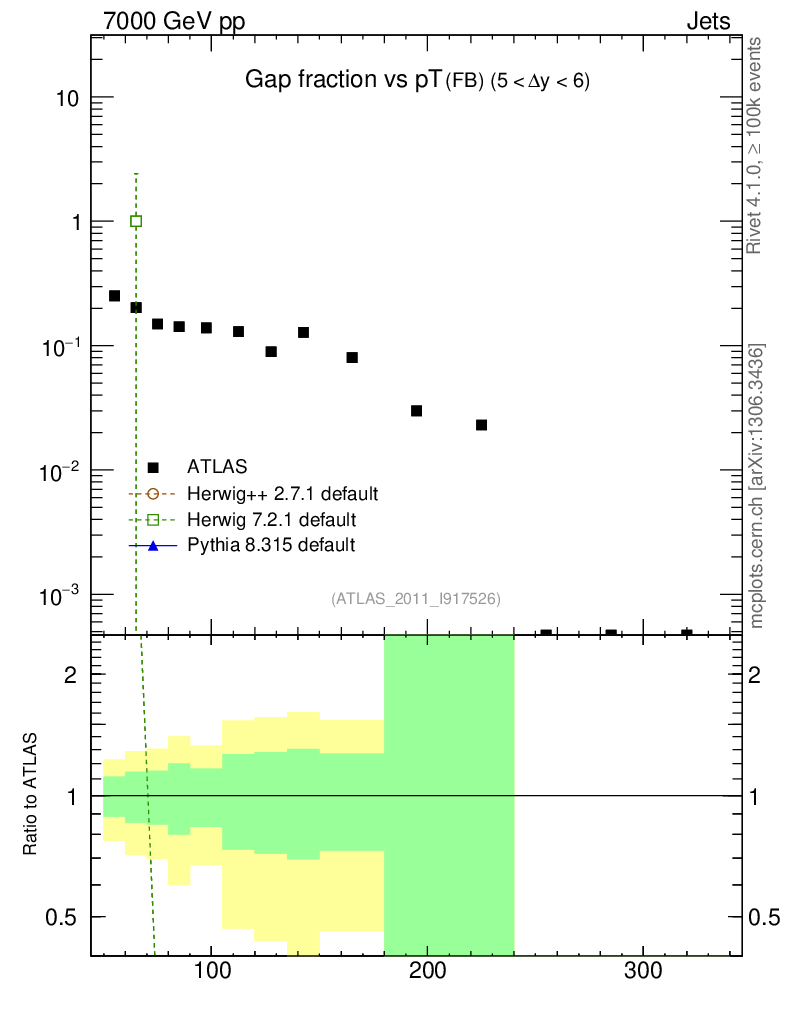 Jets : Jets + Veto : Gap fraction vs pT (FB)