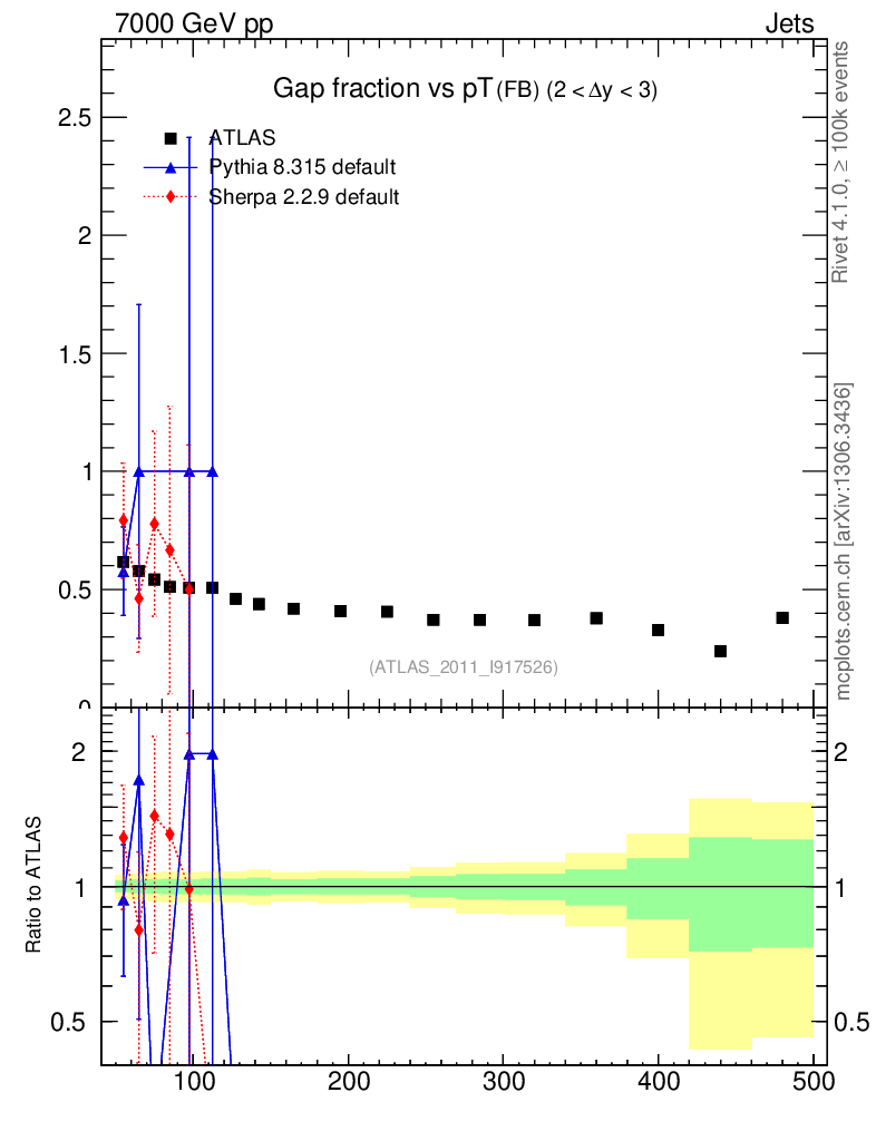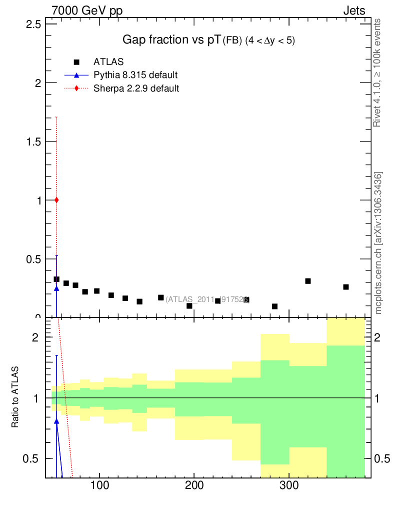 Jets : Jets + Veto : Gap fraction vs pT (FB)