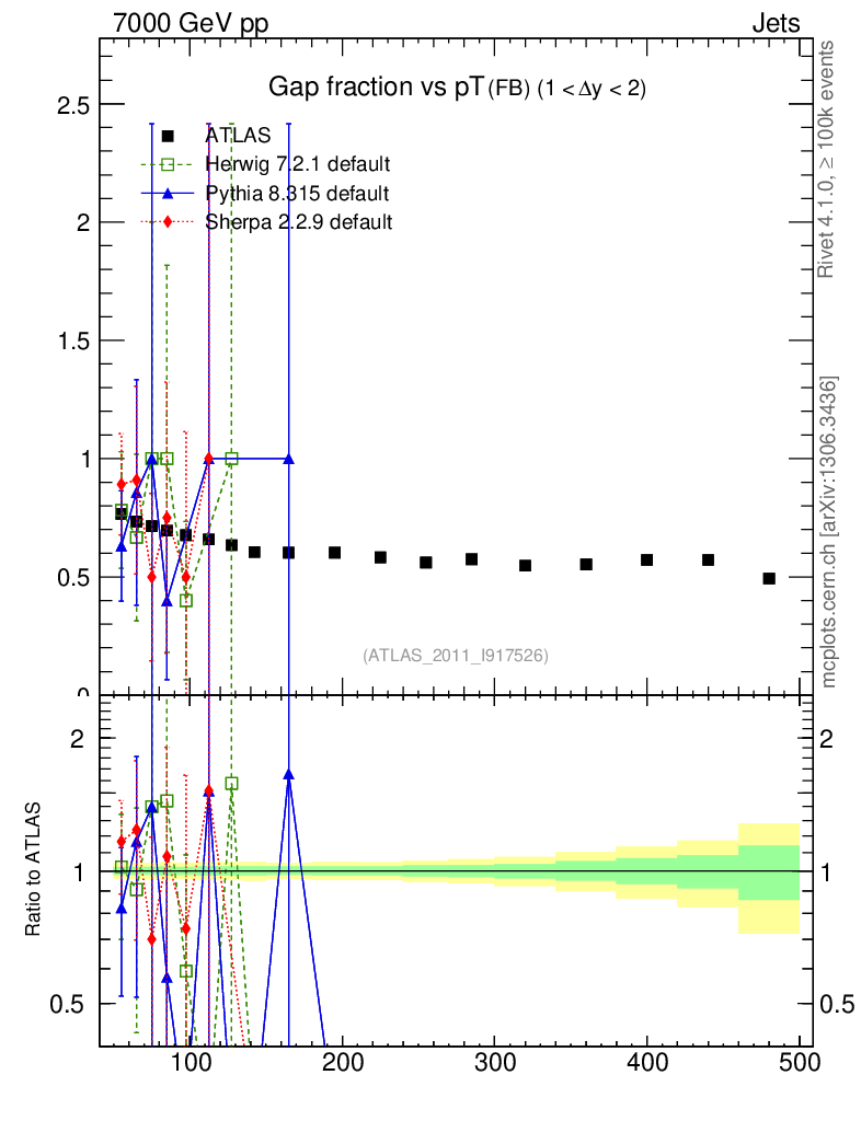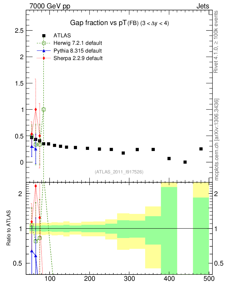 Jets : Jets + Veto : Gap fraction vs pT (FB)