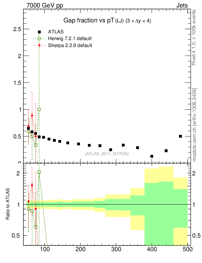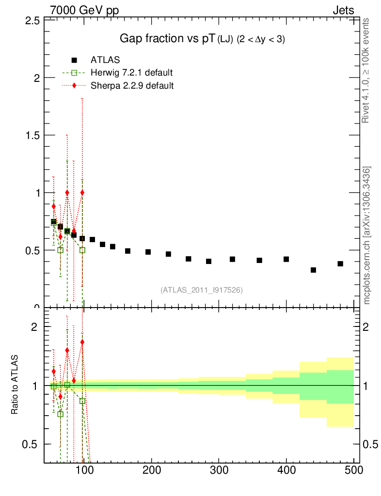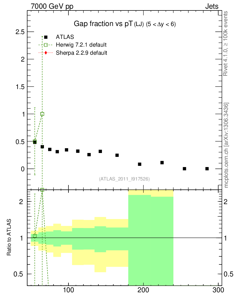 Gap fraction vs pT (LJ)