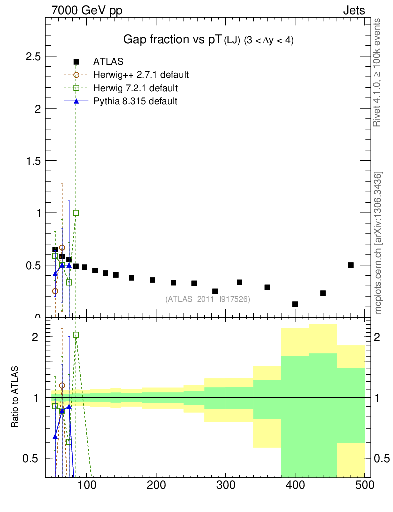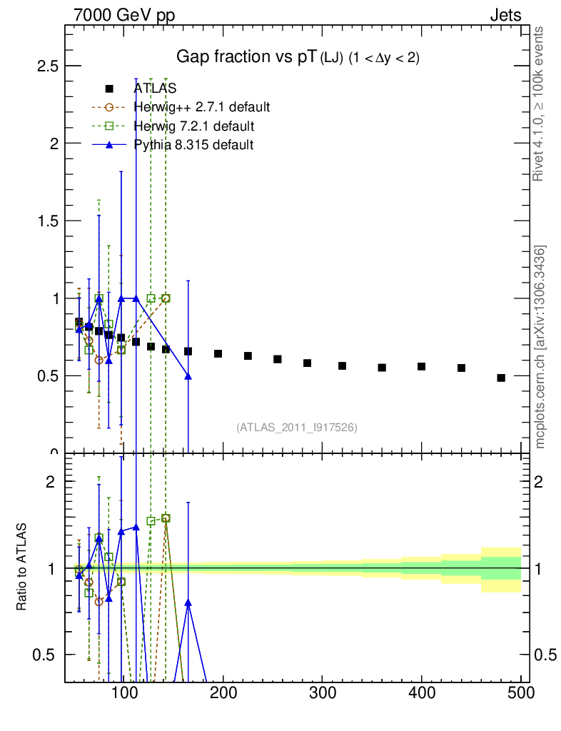 Jets : Jets + Veto : Gap fraction vs pT (LJ)