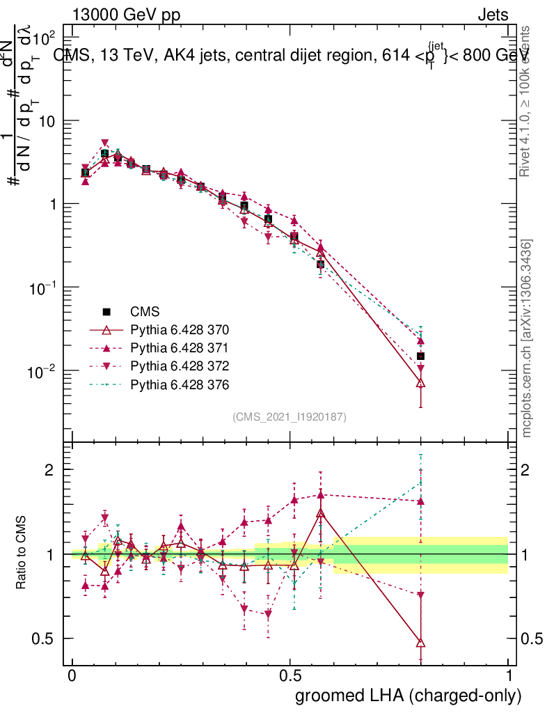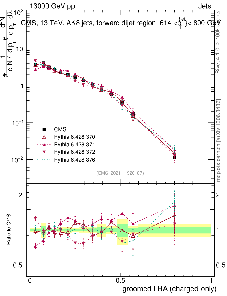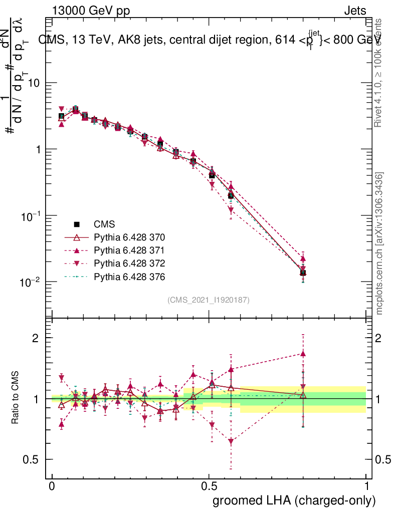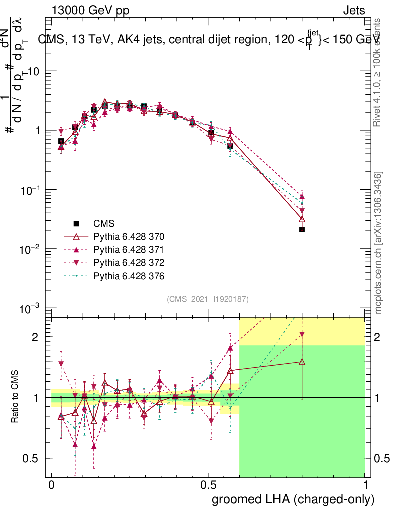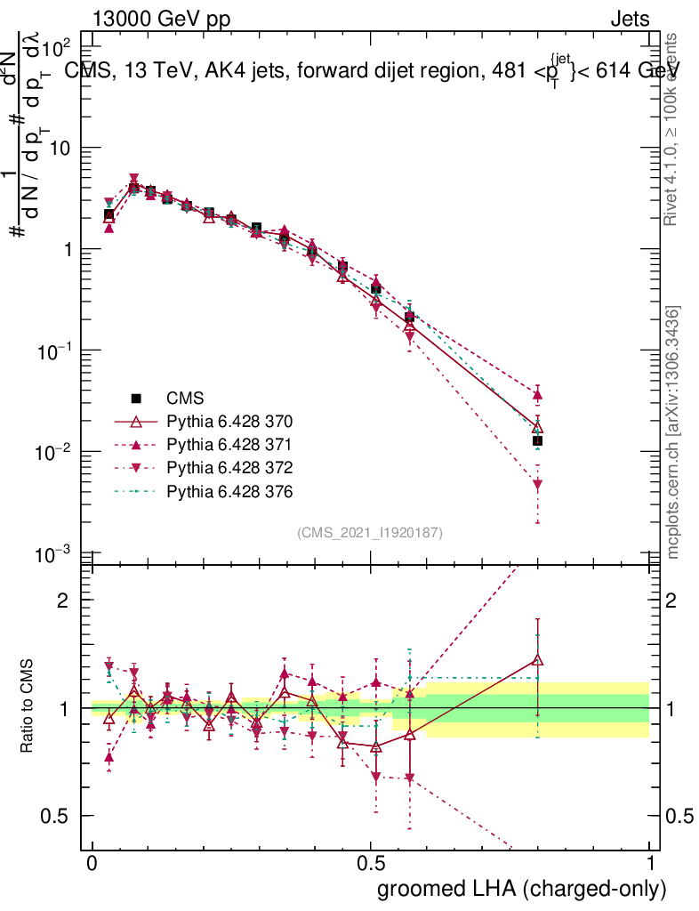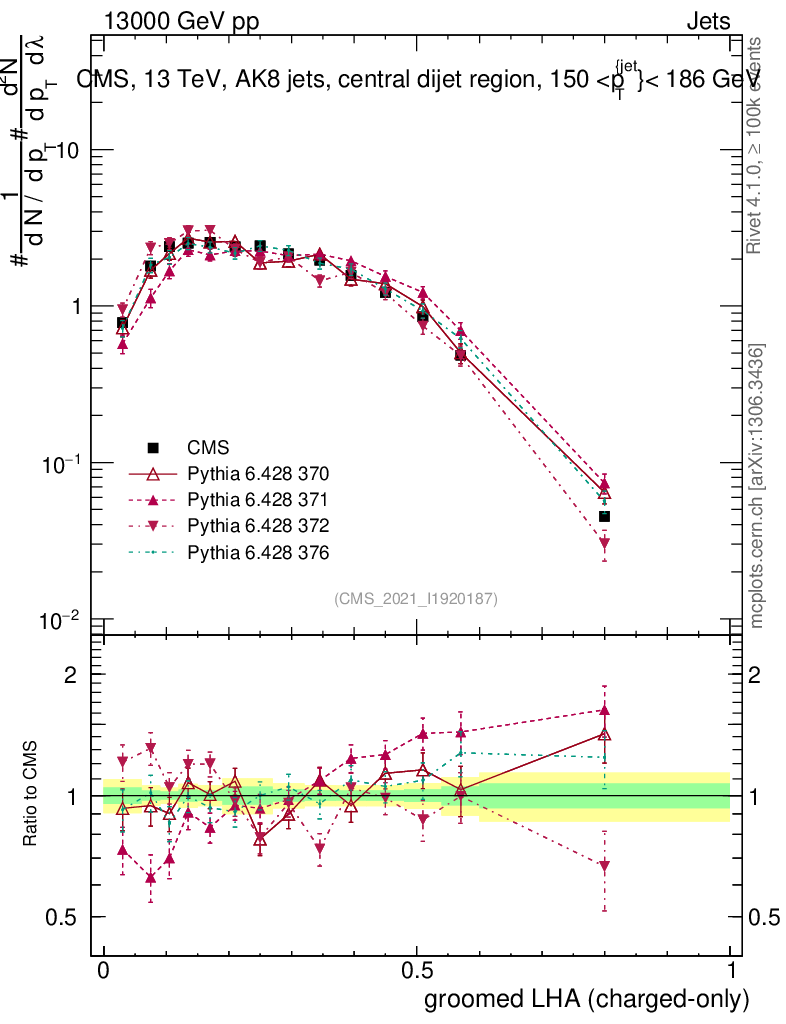 Jets : Generalized angularities : Groomed LHA λ10.5 (charged only)