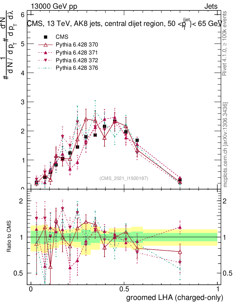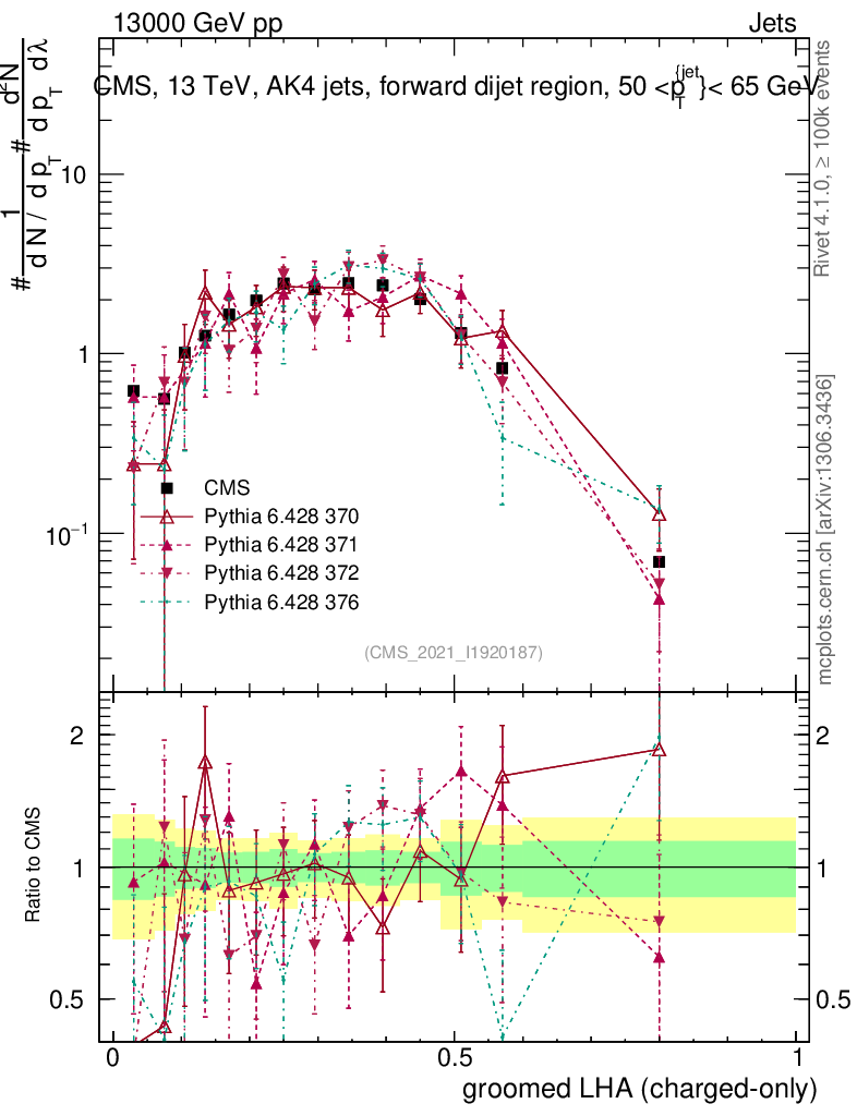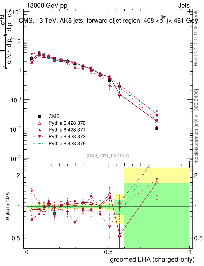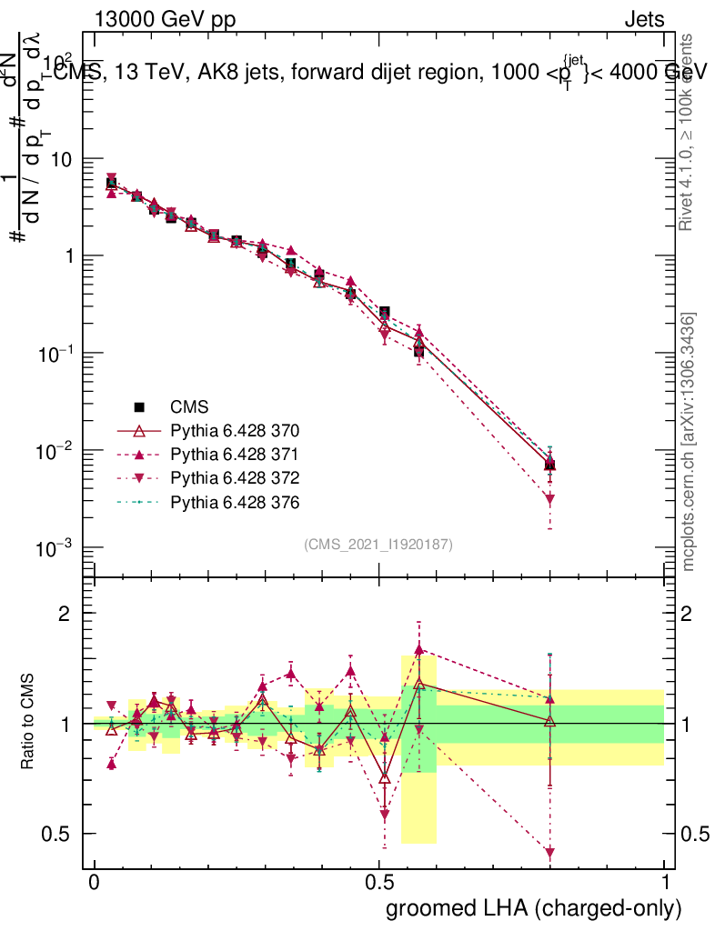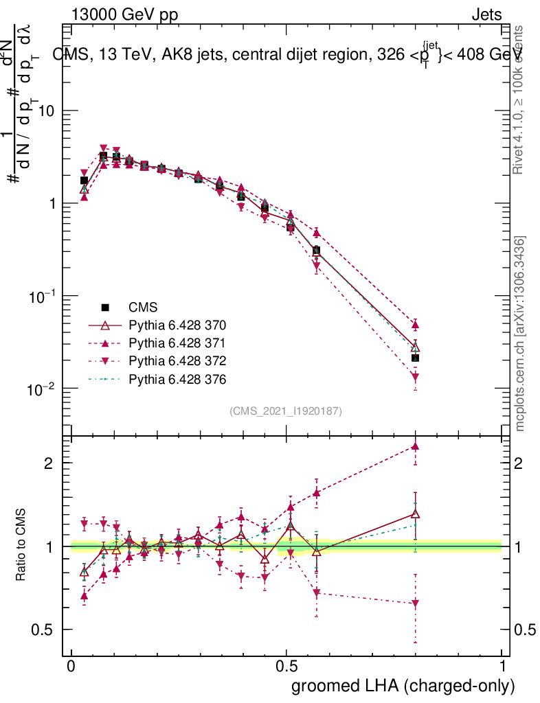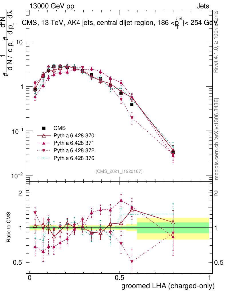 Jets : Generalized angularities : Groomed LHA λ10.5 (charged only)