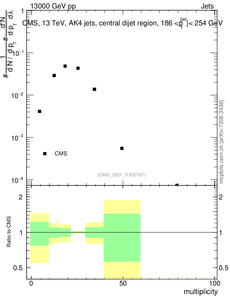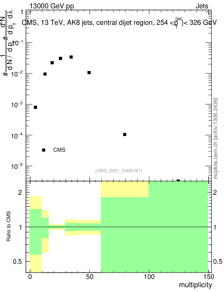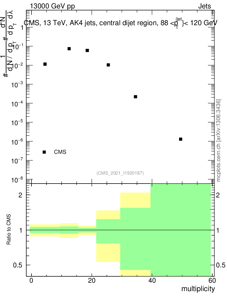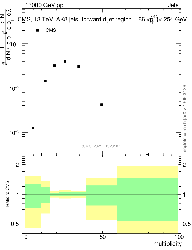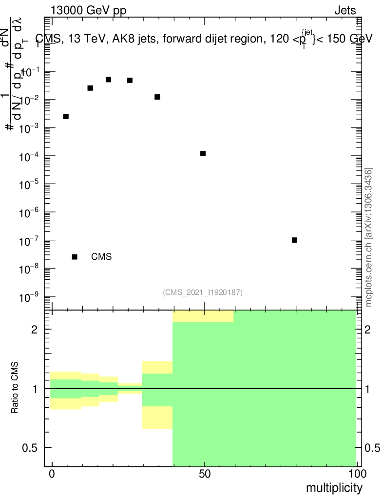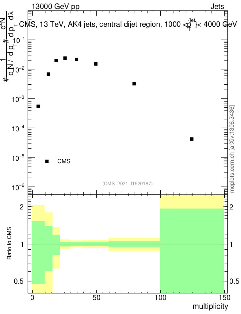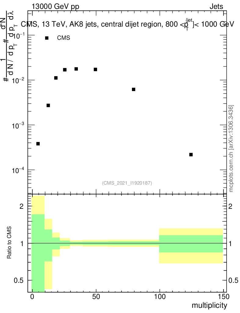 Plot of j.mult in 13000 GeV pp collisions