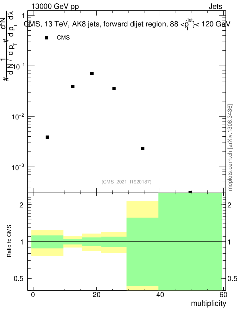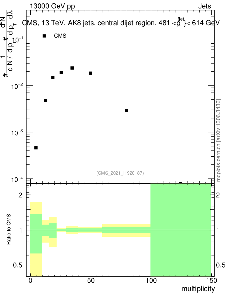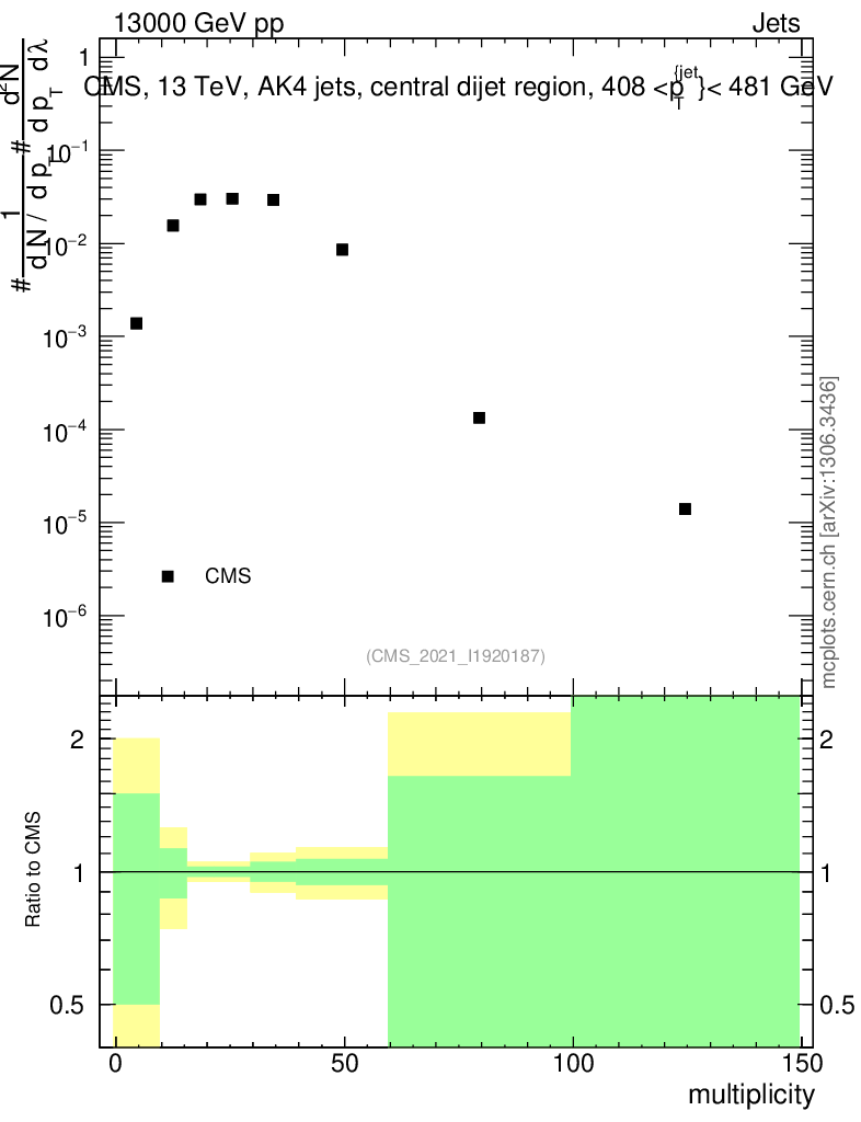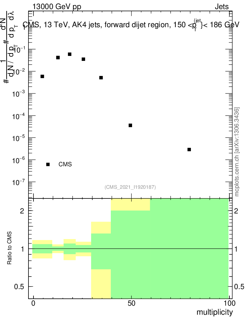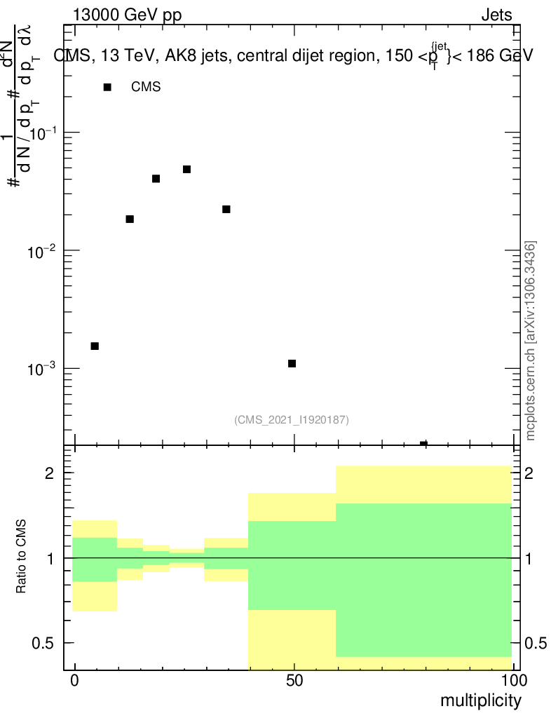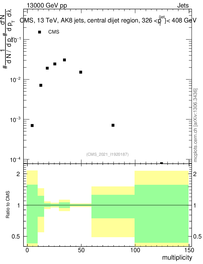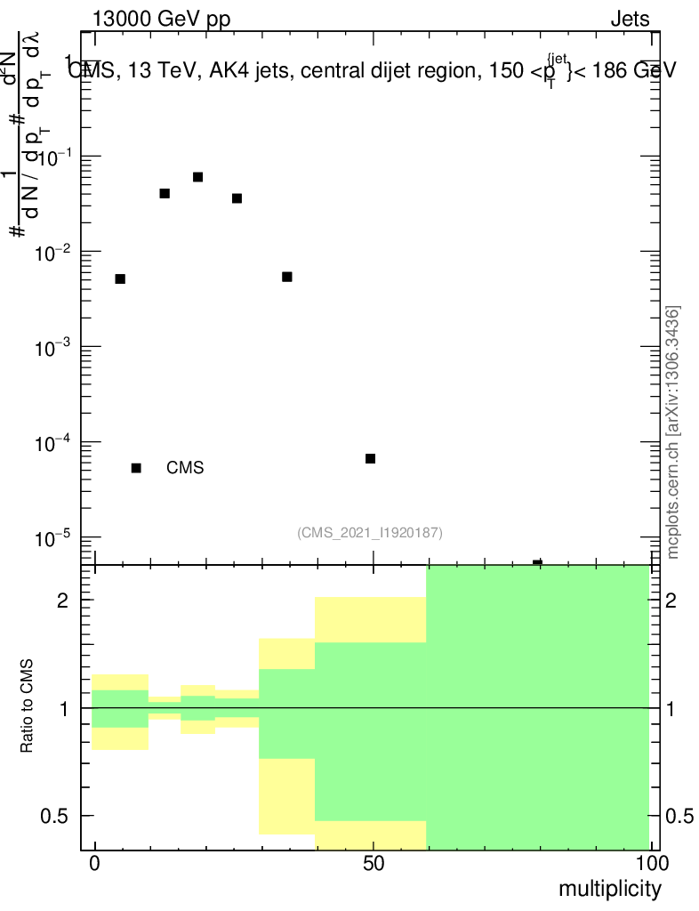 Plot of j.mult in 13000 GeV pp collisions