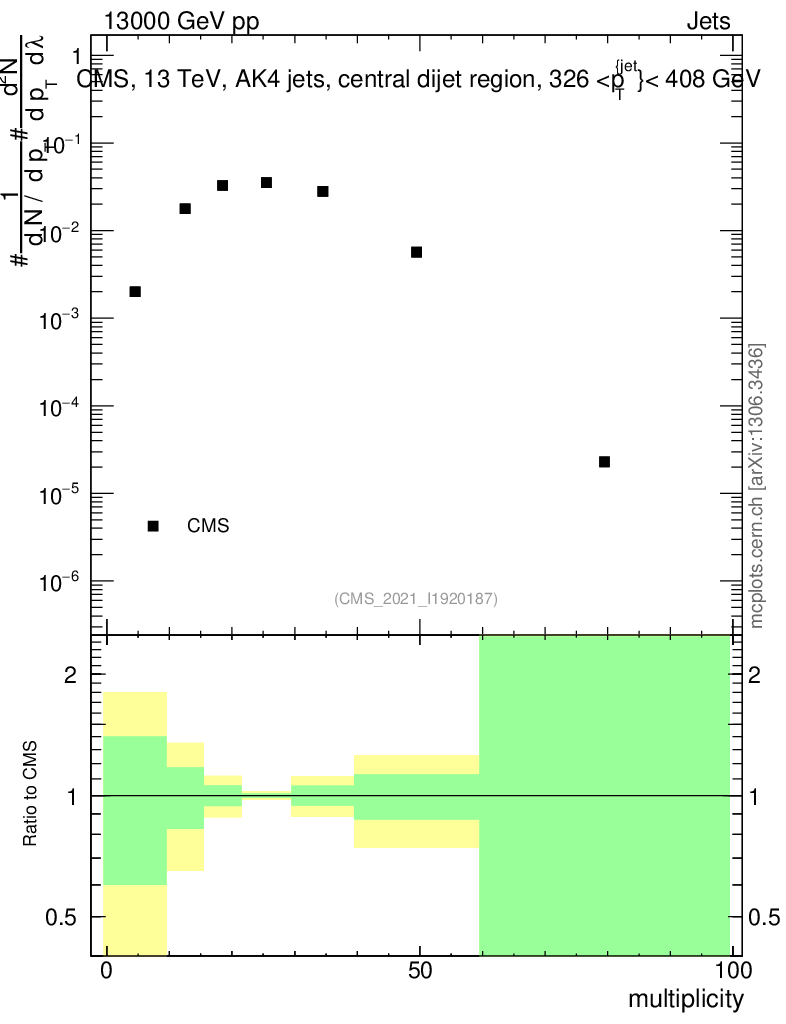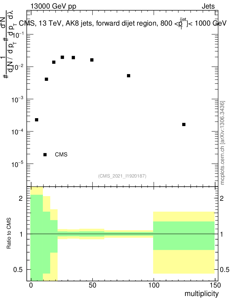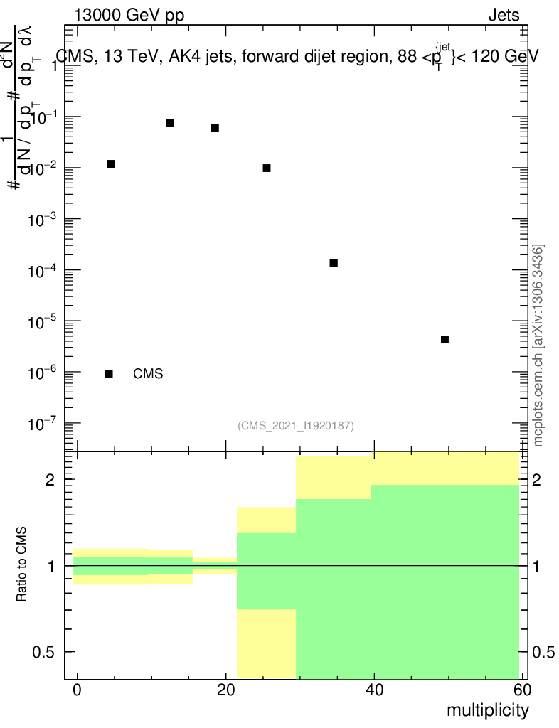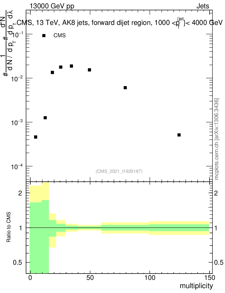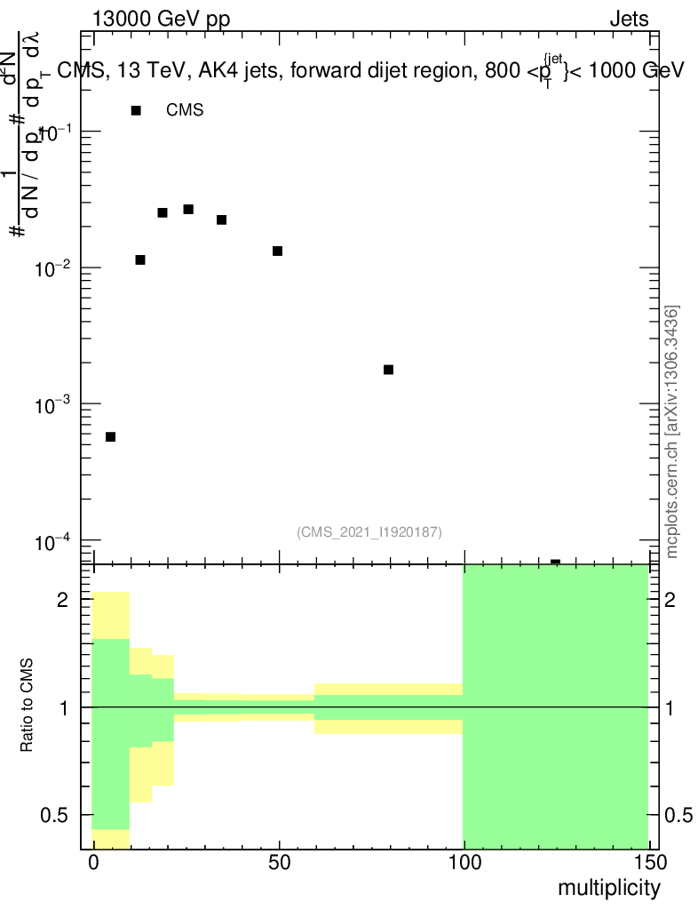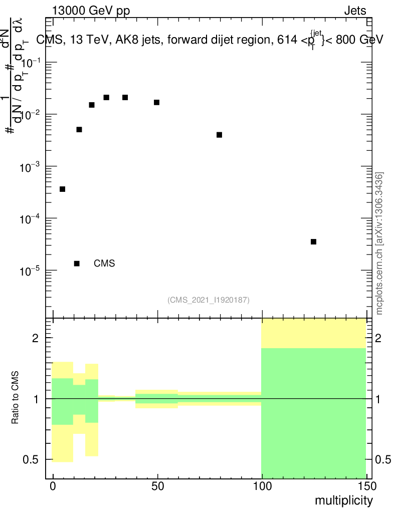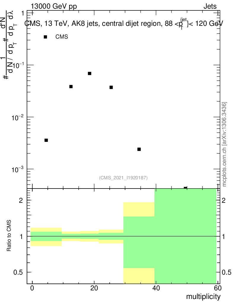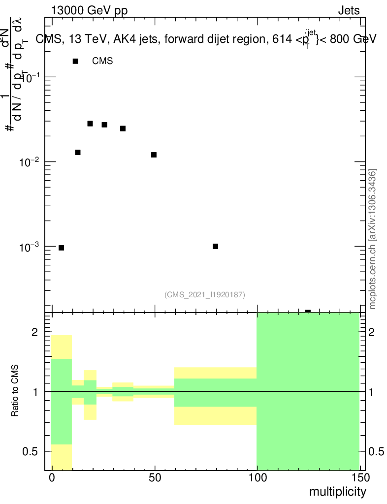 Plot of j.mult in 13000 GeV pp collisions