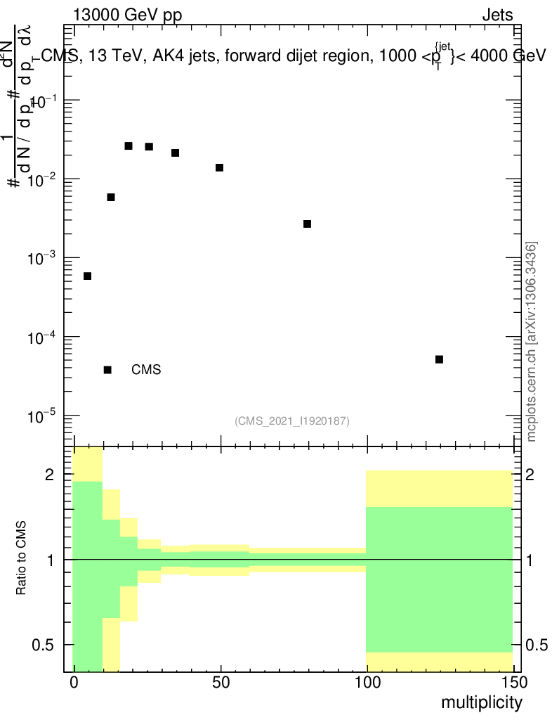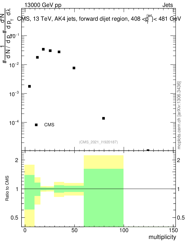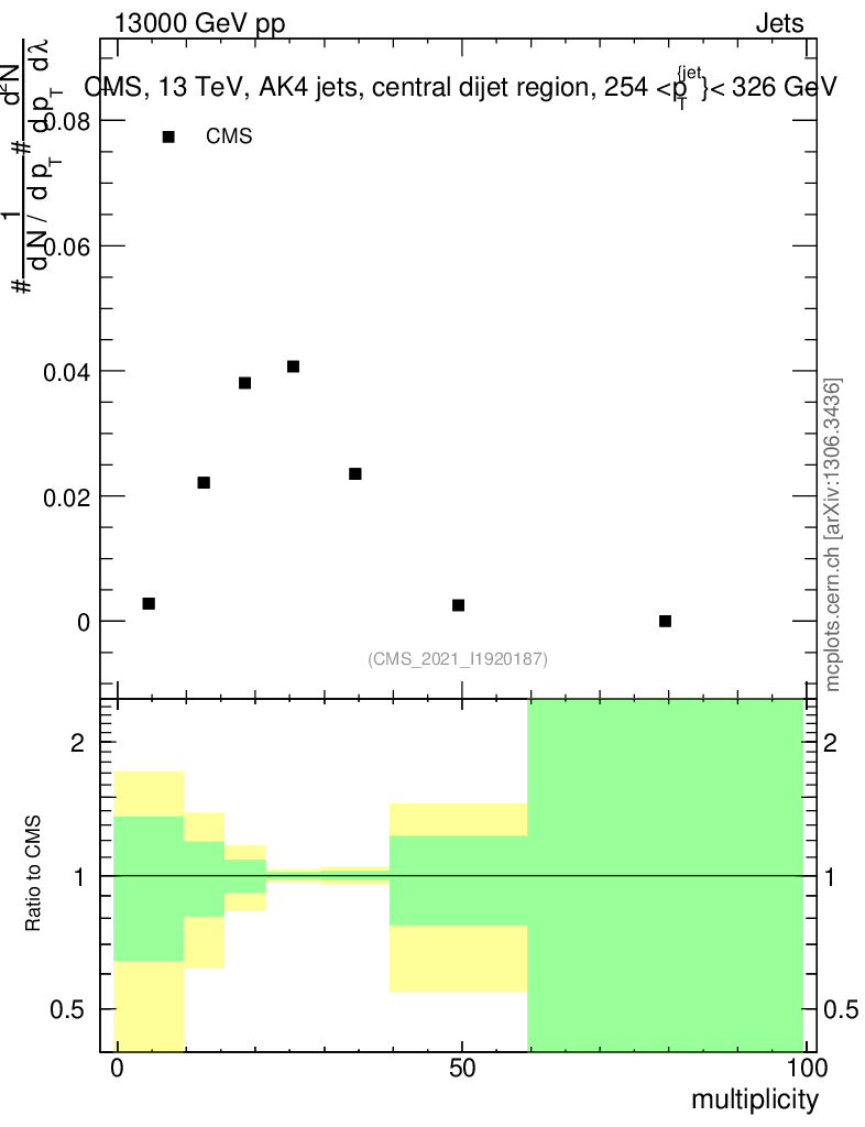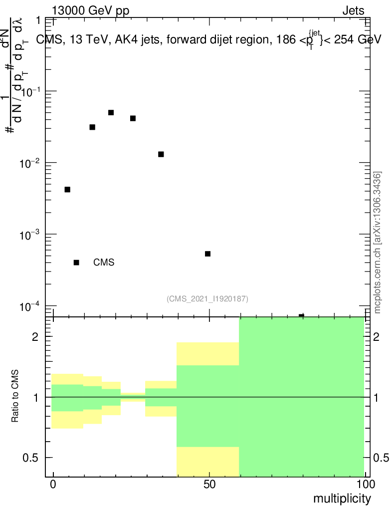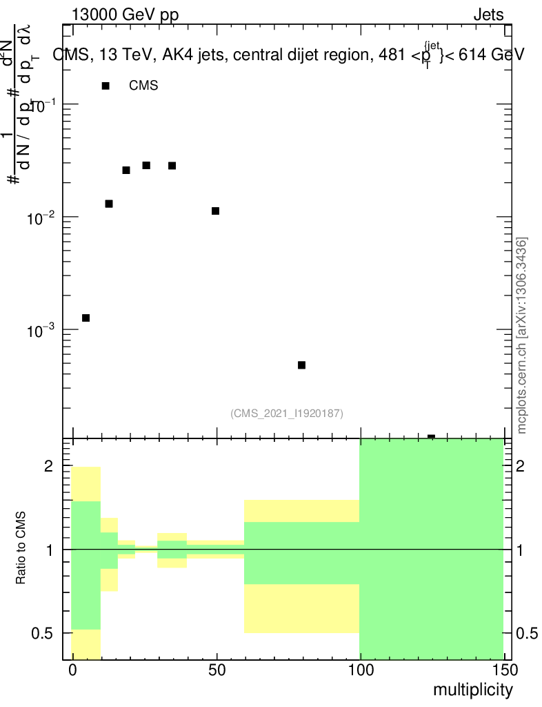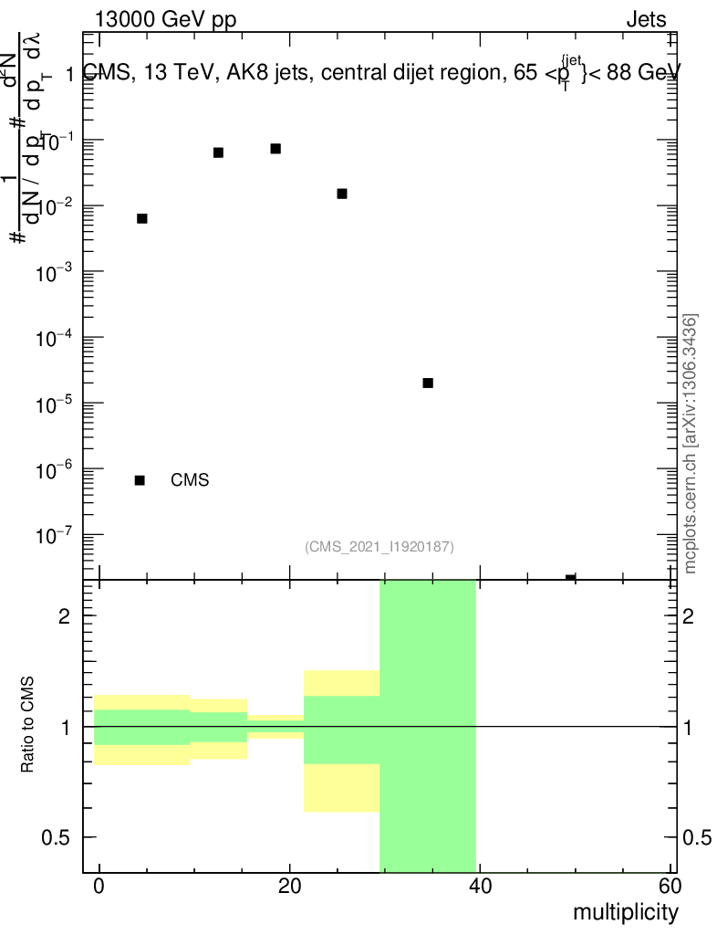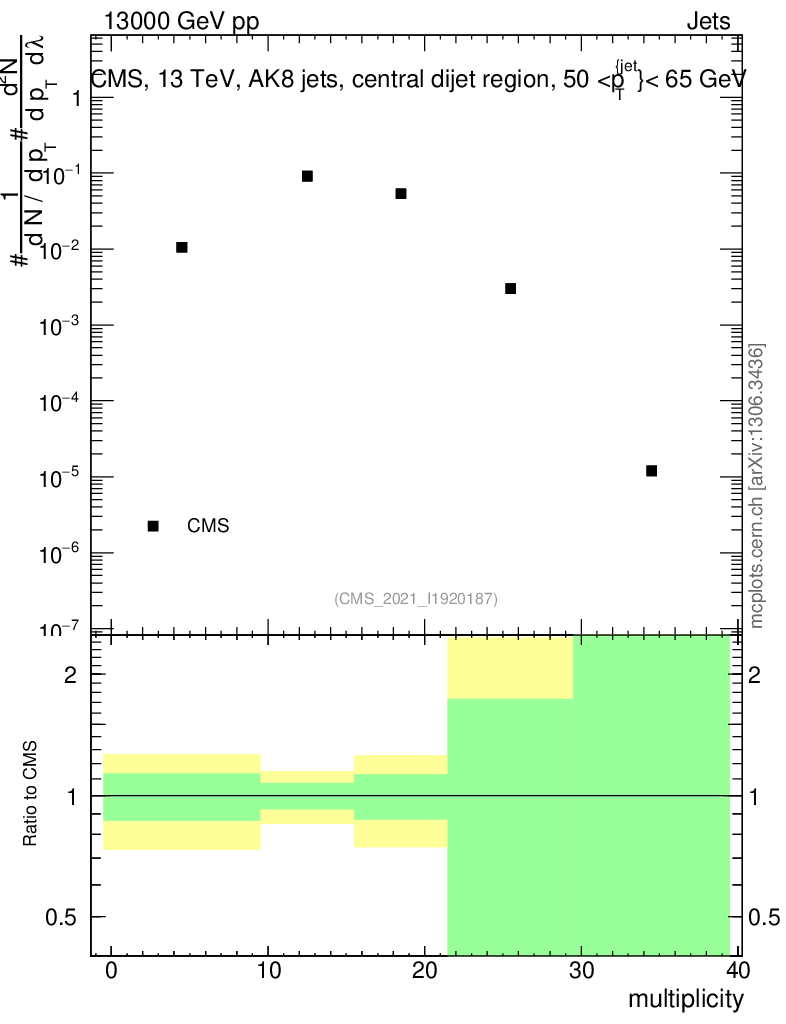 Plot of j.mult in 13000 GeV pp collisions