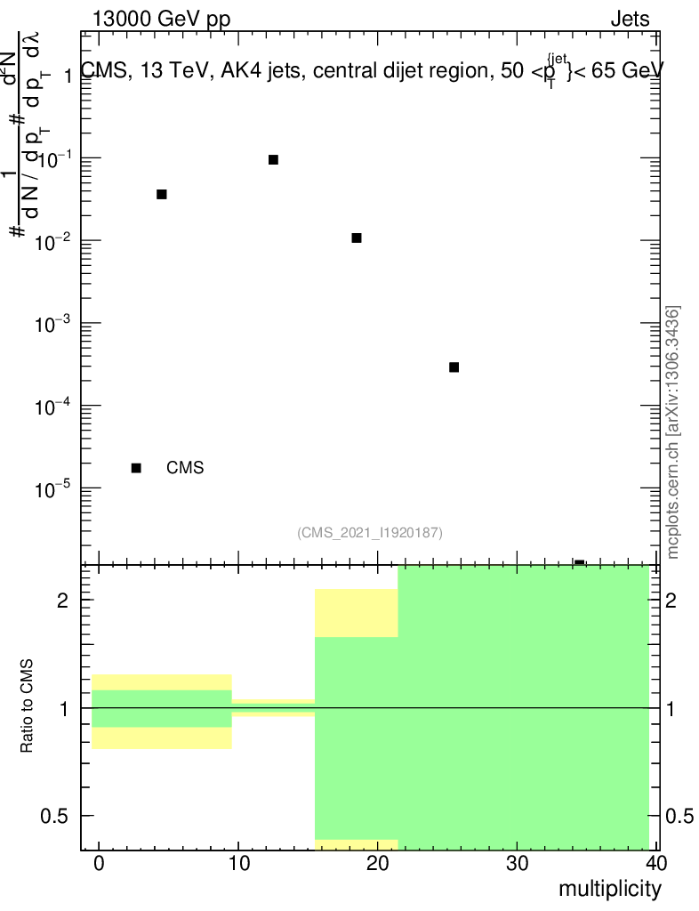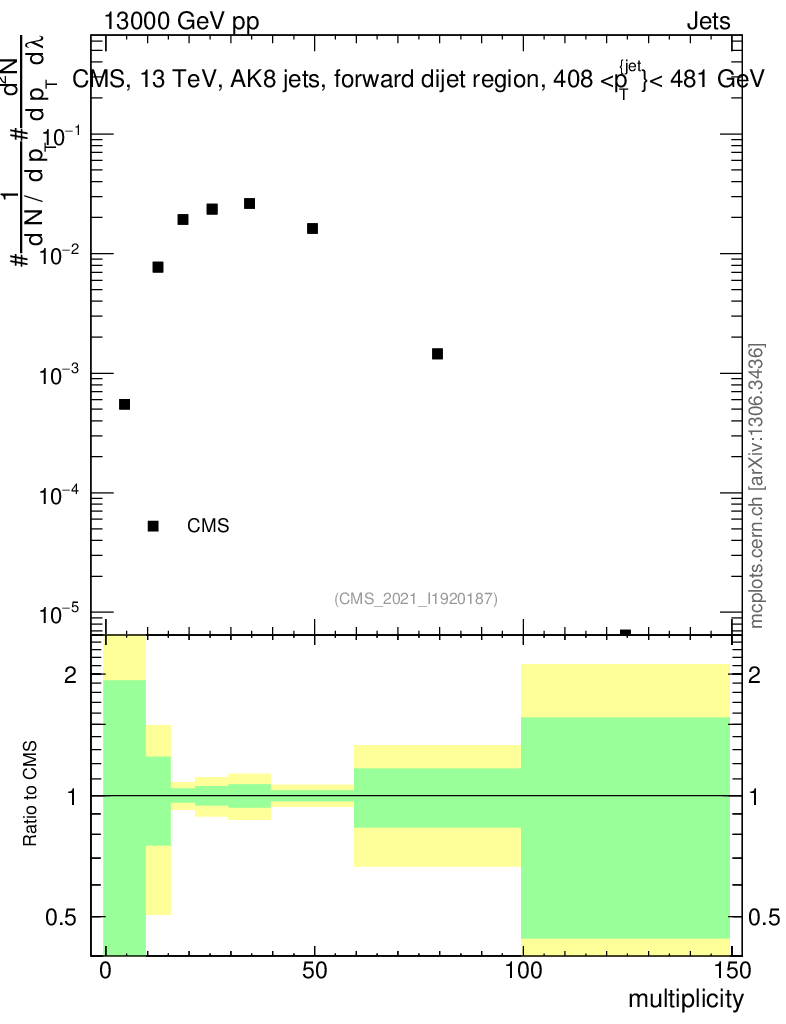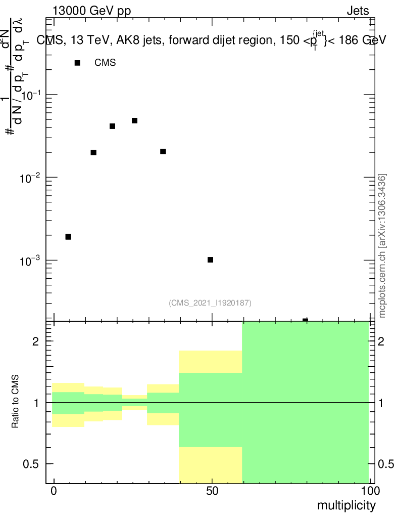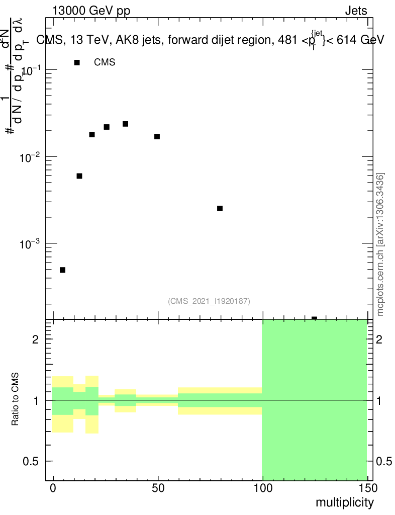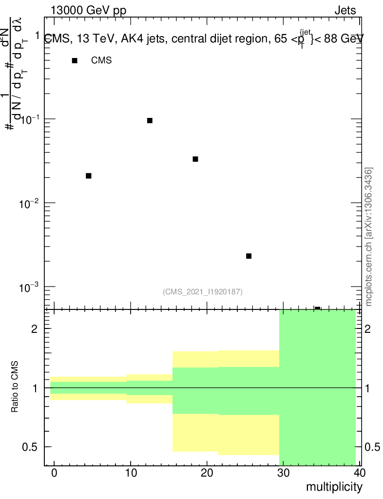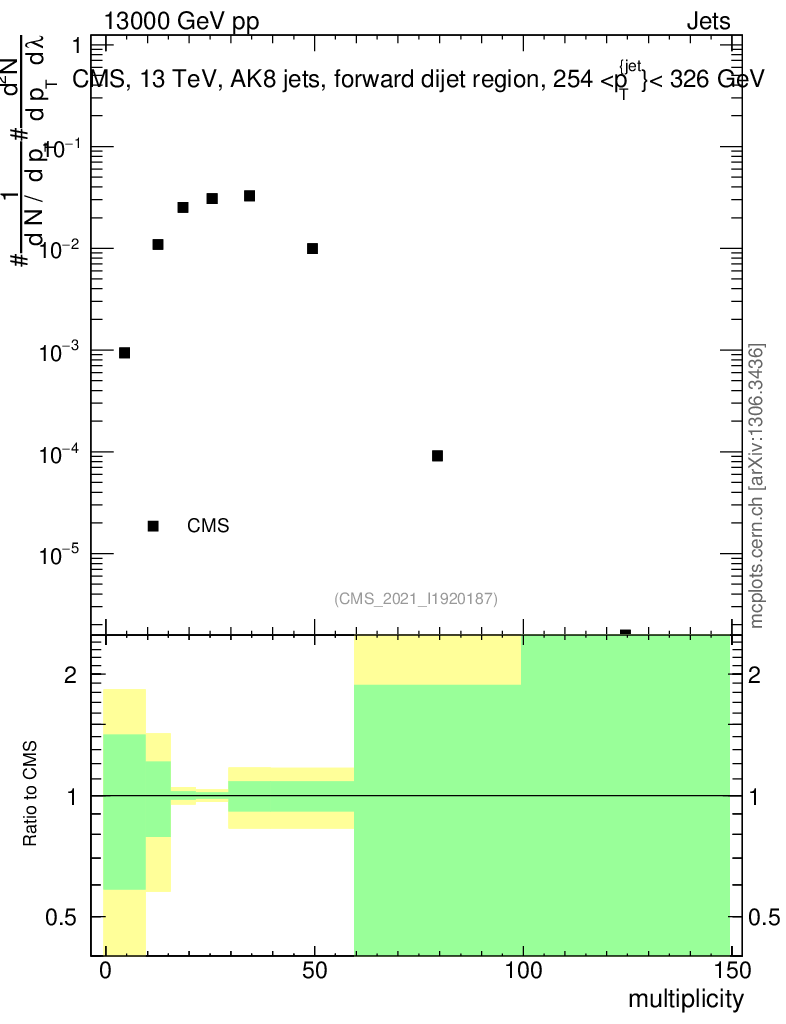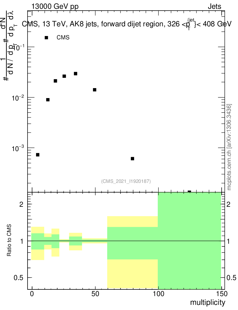 Plot of j.mult in 13000 GeV pp collisions