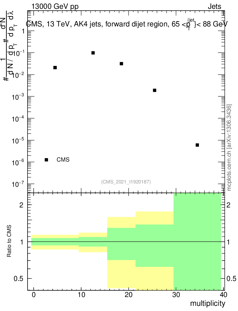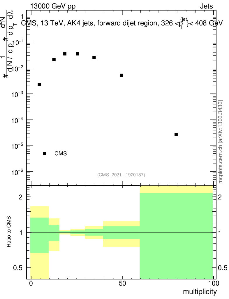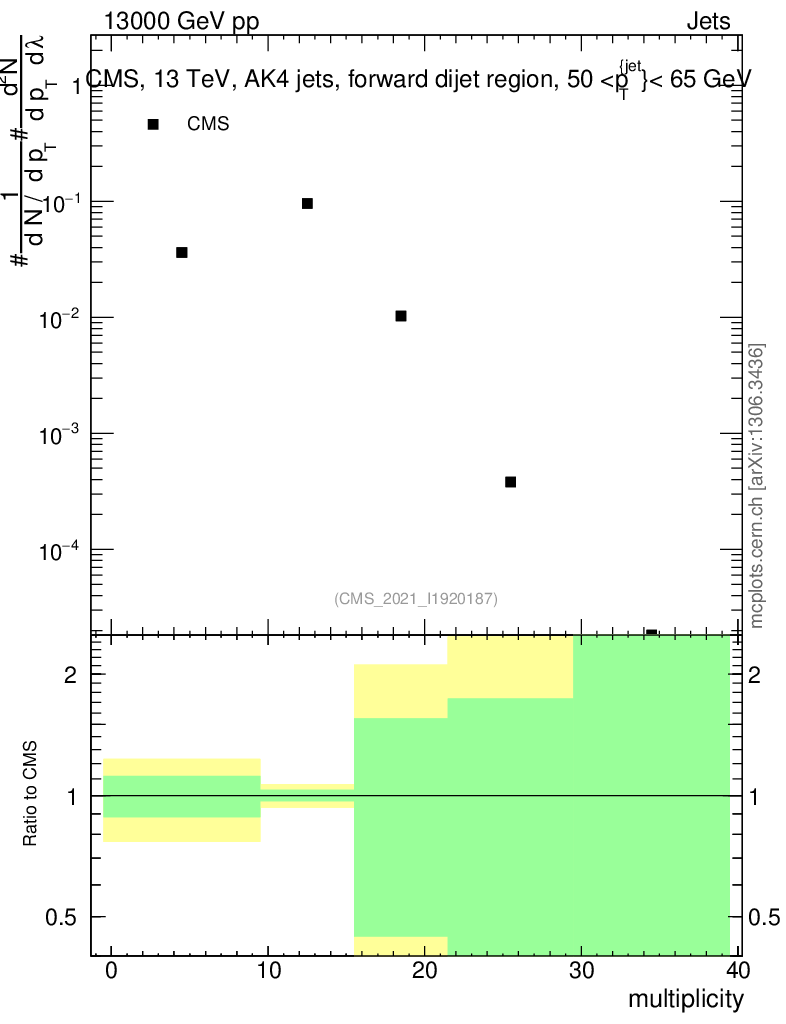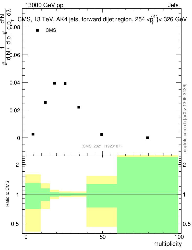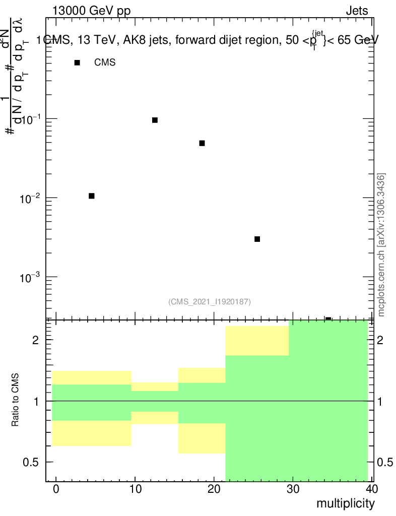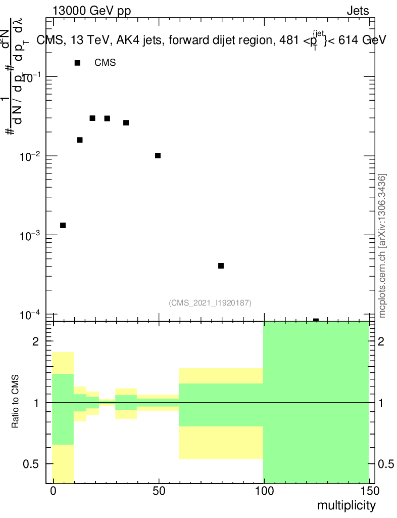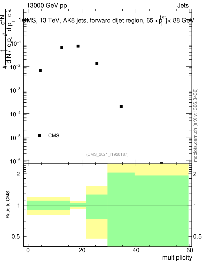 Plot of j.mult in 13000 GeV pp collisions