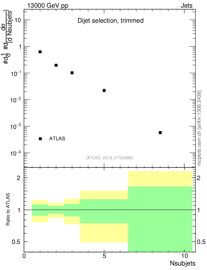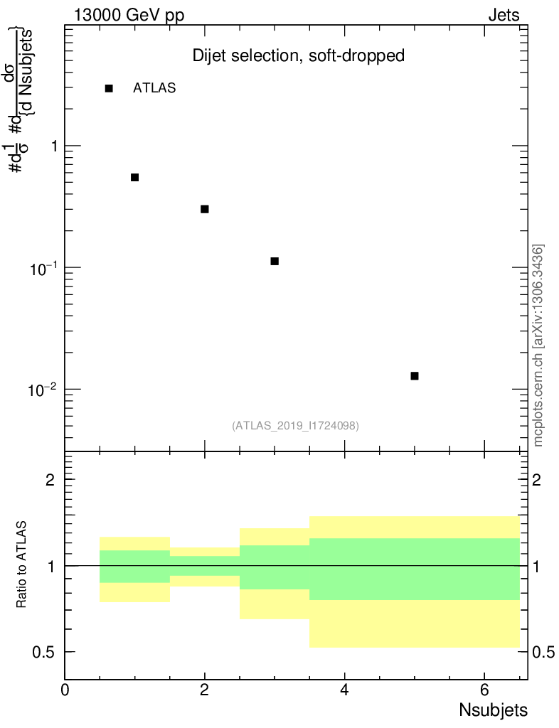 Plot of j.nsubjets in 13000 GeV pp collisions
