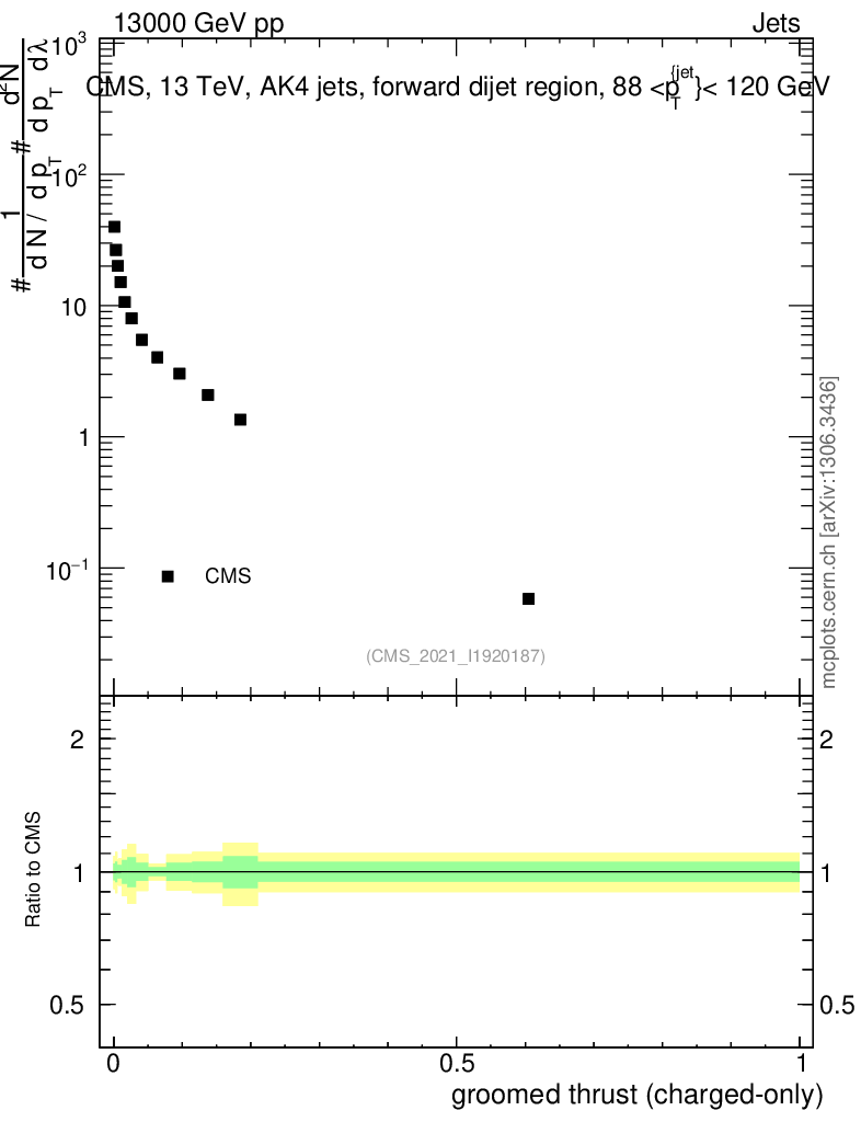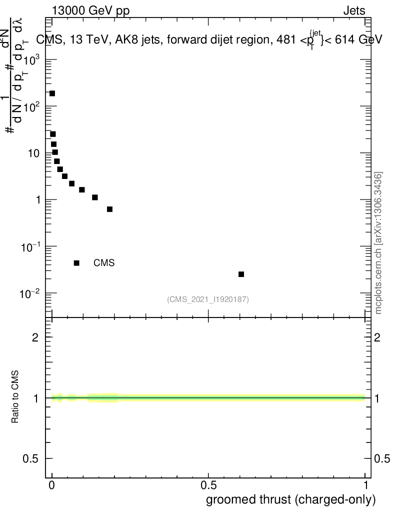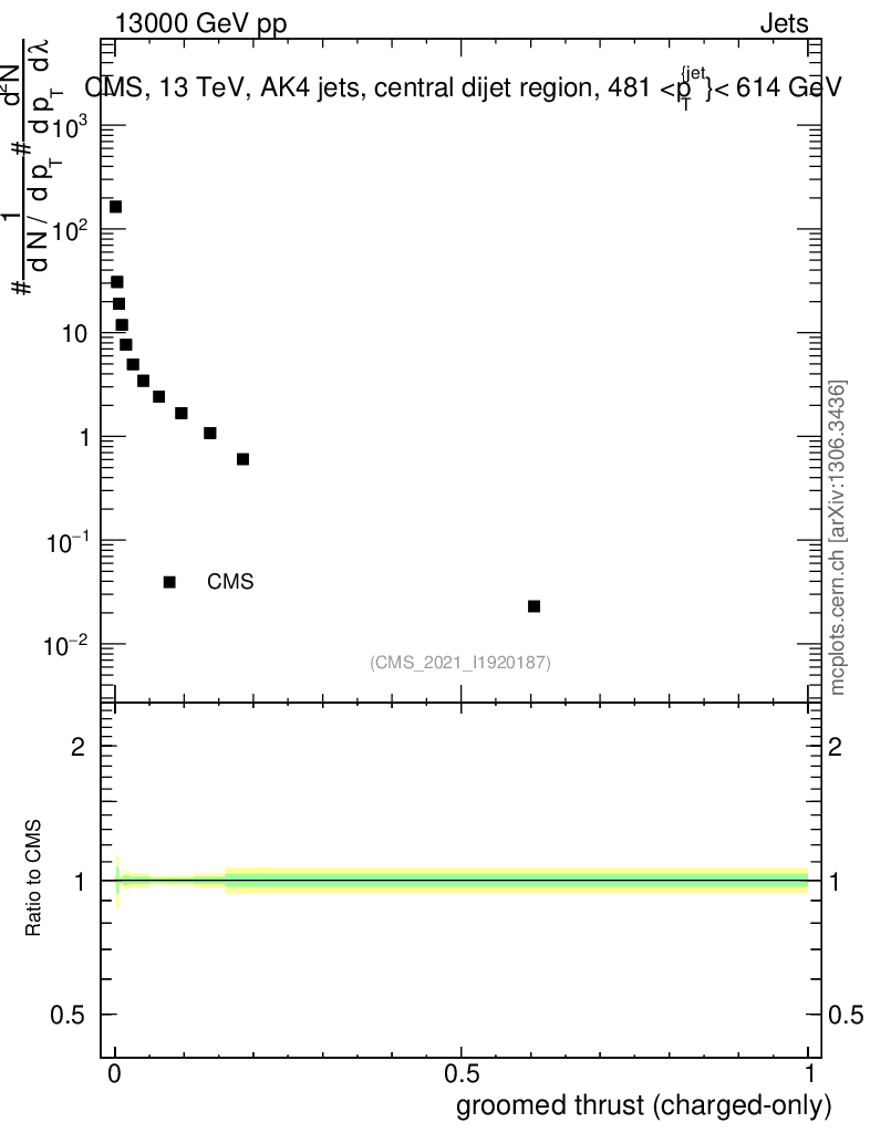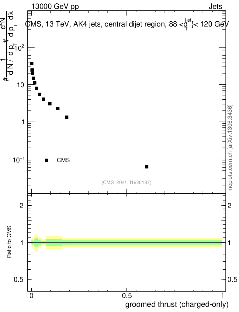 Jets : Generalized angularities : Groomed thrust λ12 (charged only)