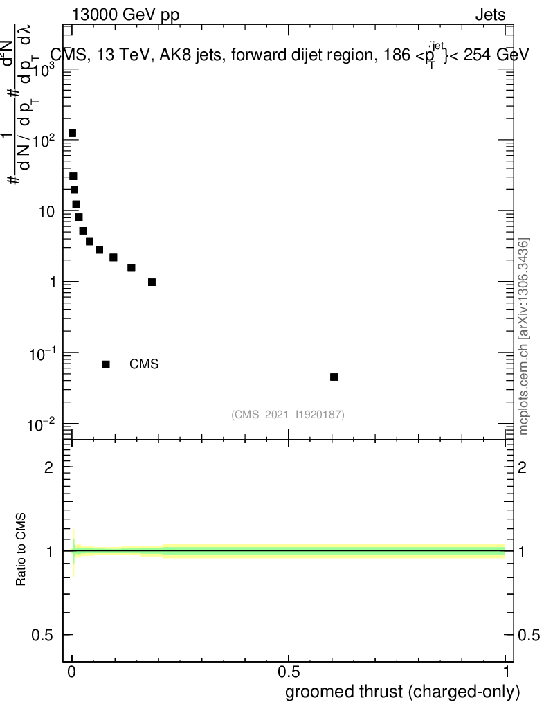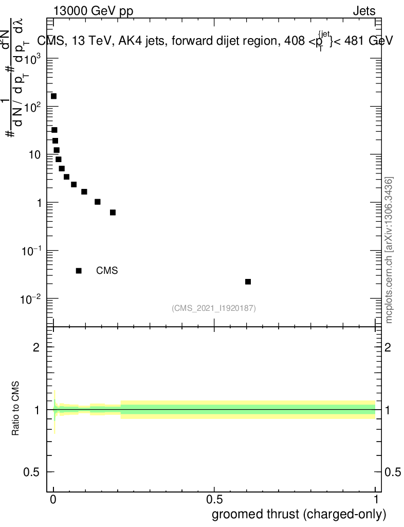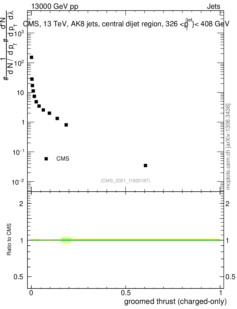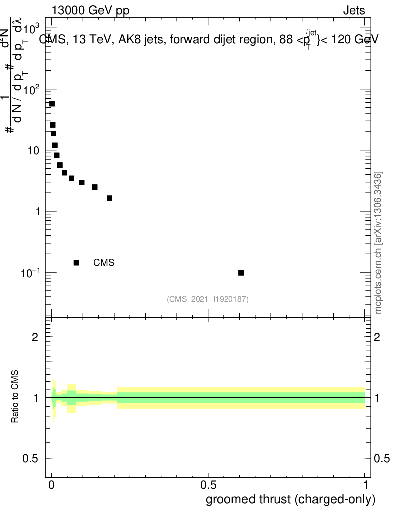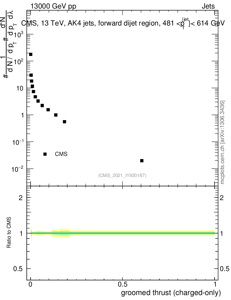Jets : Generalized angularities : Groomed thrust λ12 (charged only)