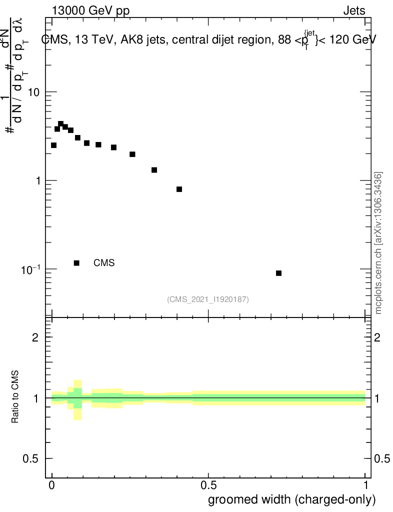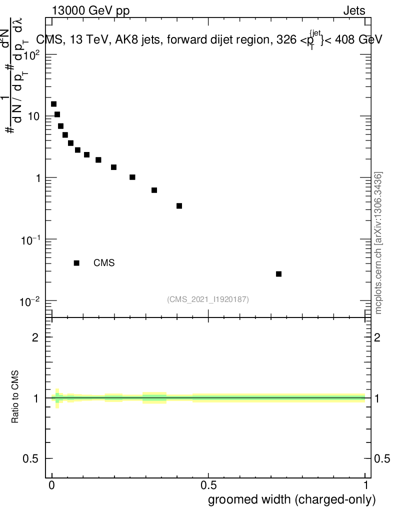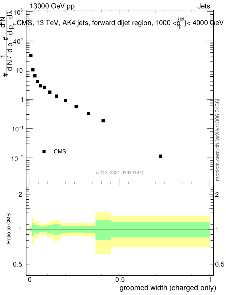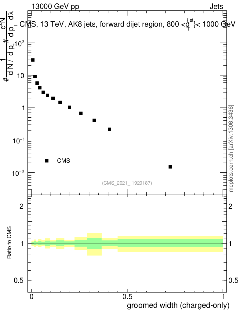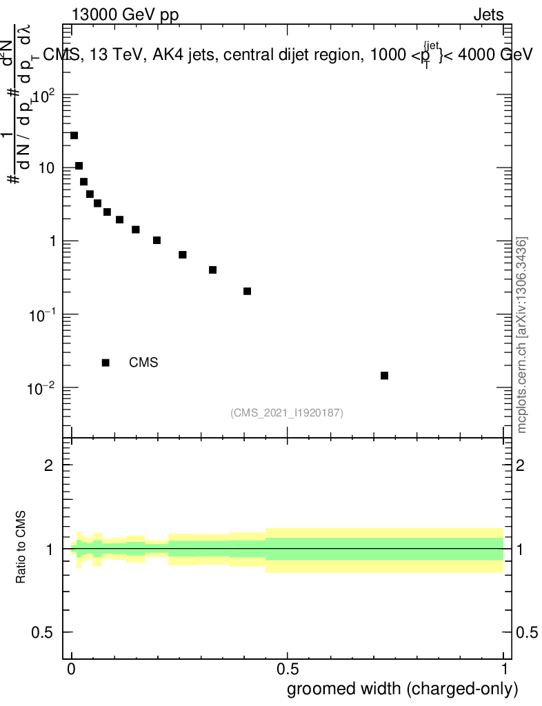 Jets : Generalized angularities : Groomed width λ11 (charged only)