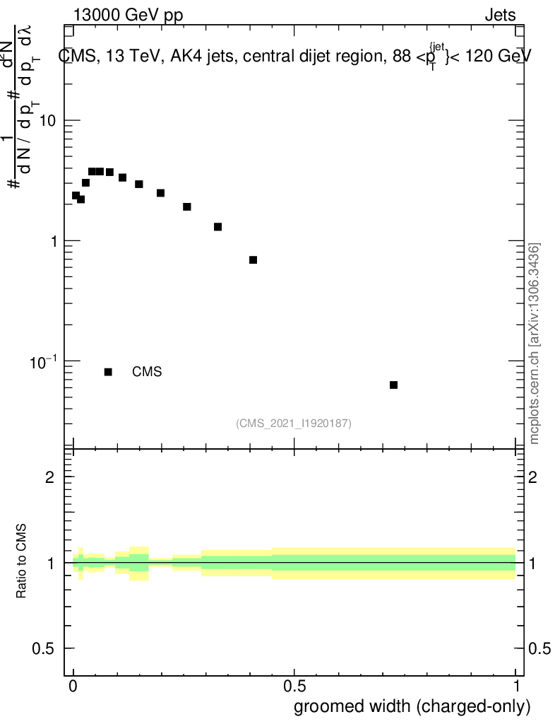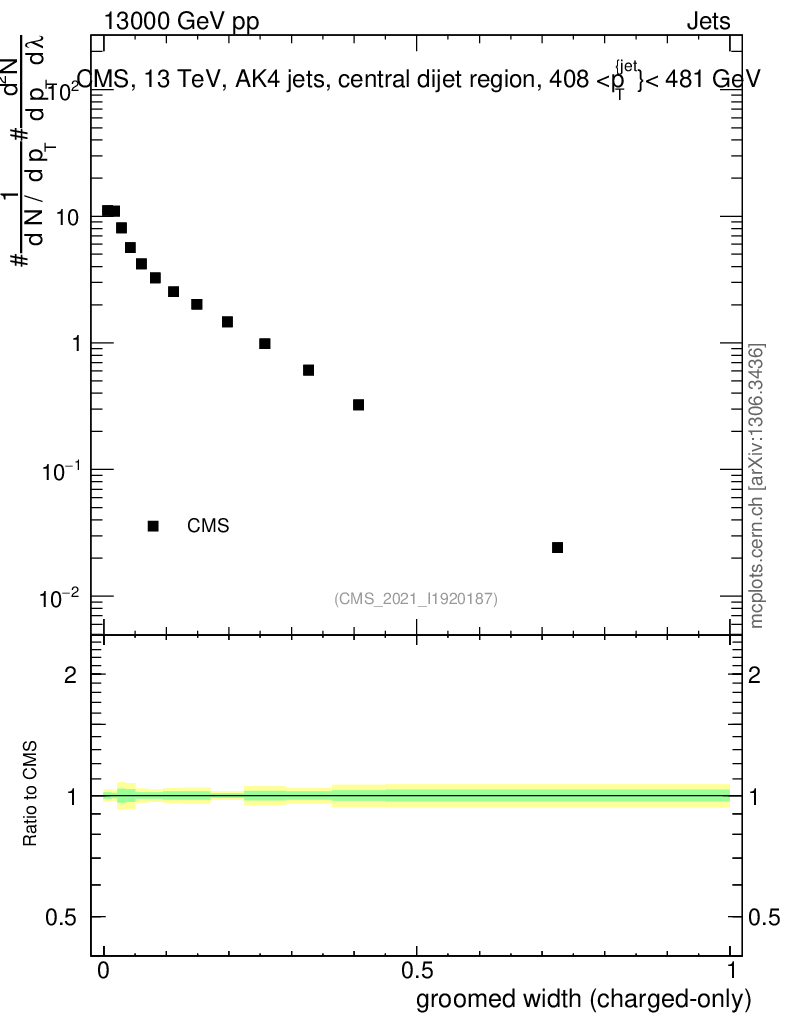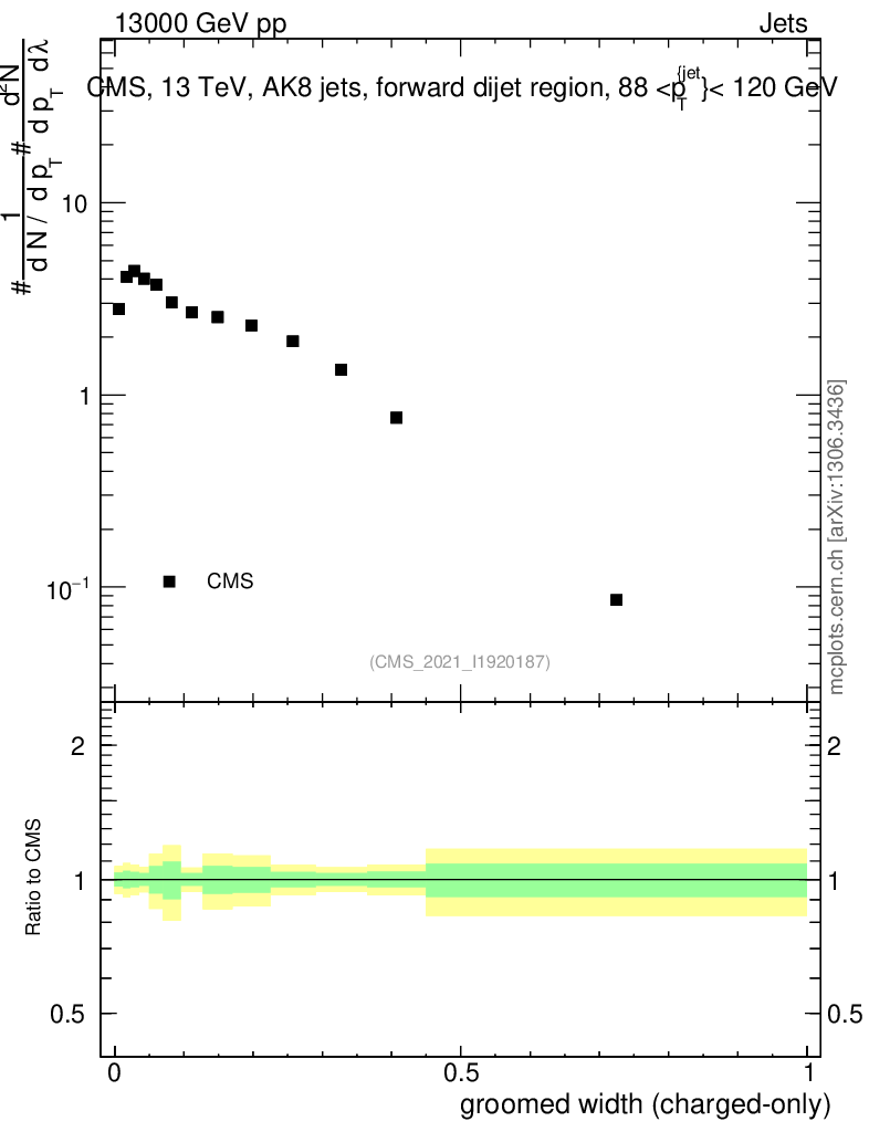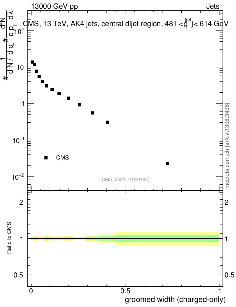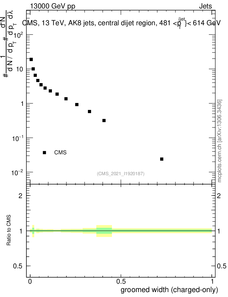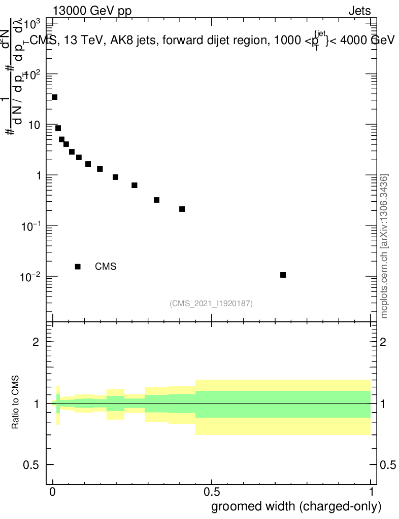 Jets : Generalized angularities : Groomed width λ11 (charged only)