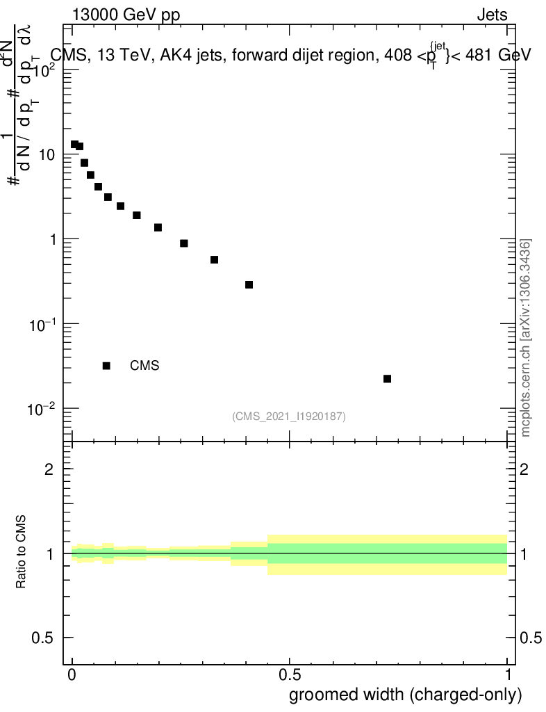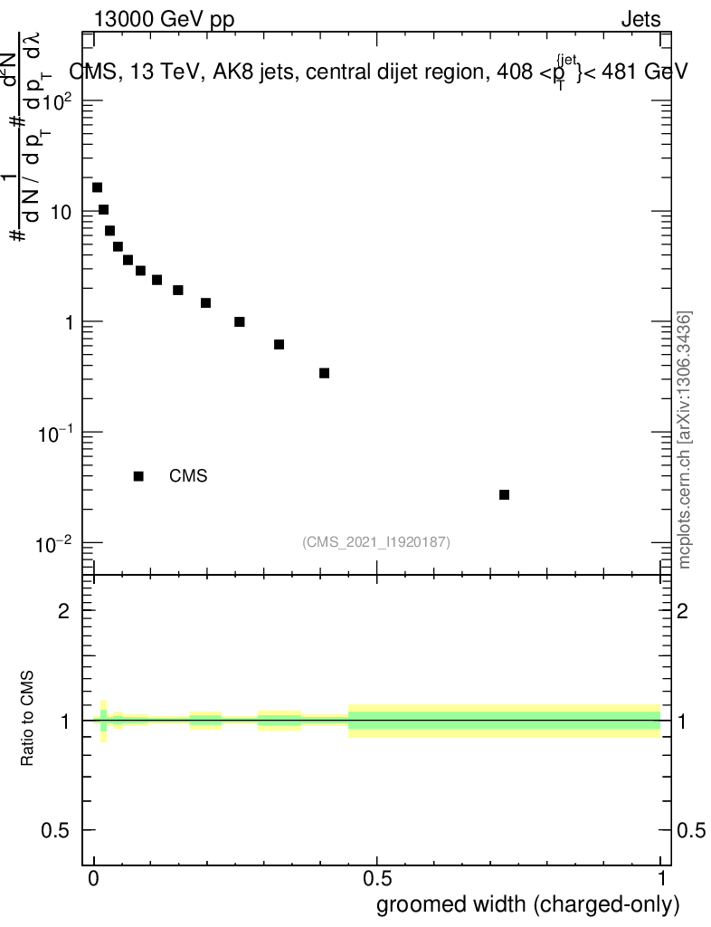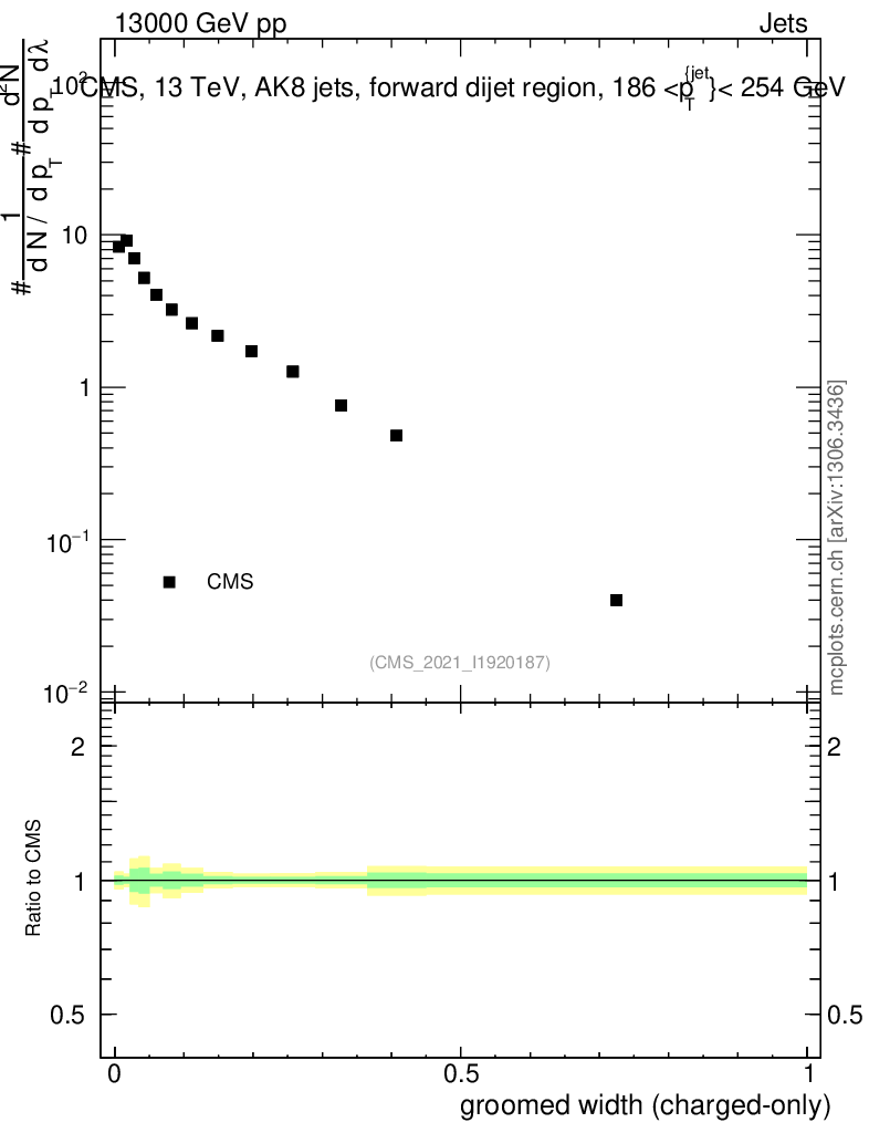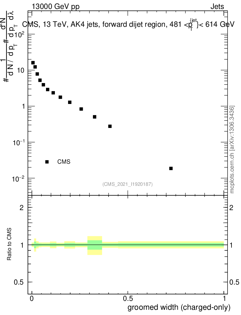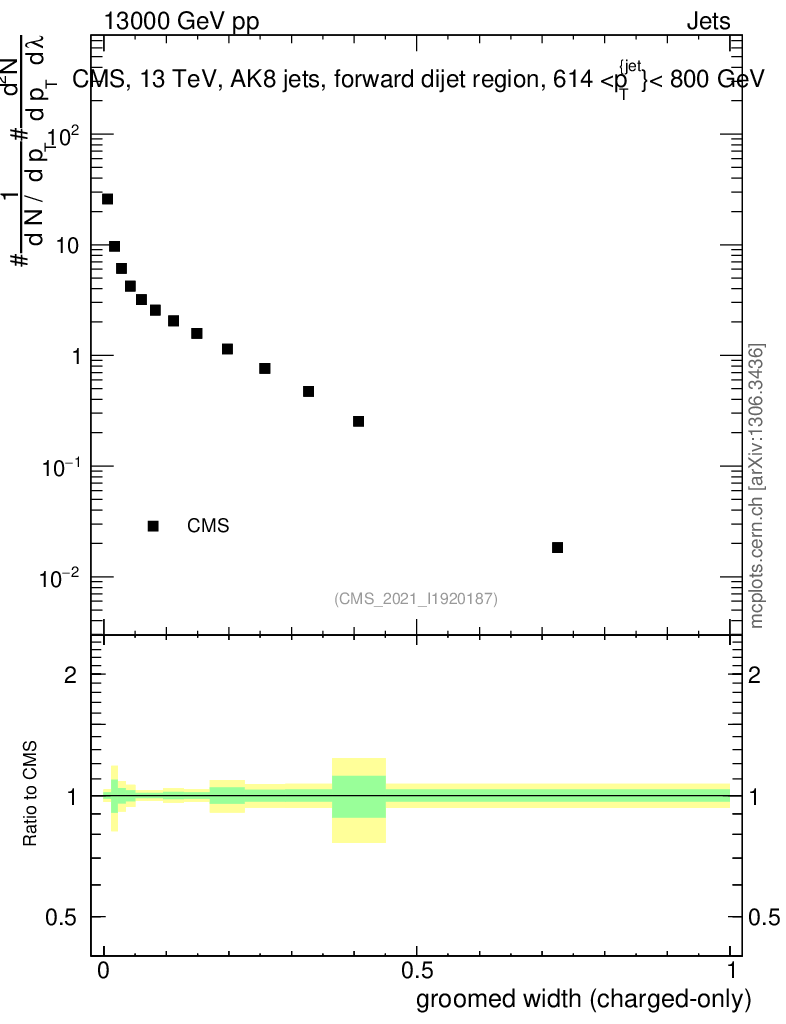 Jets : Generalized angularities : Groomed width λ11 (charged only)