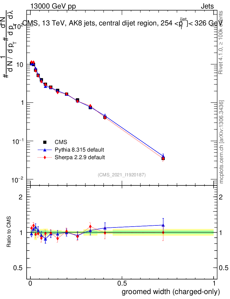 Jets : Generalized angularities : Groomed width λ11 (charged only)