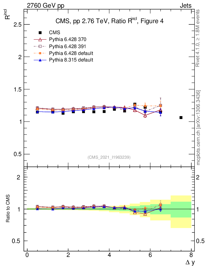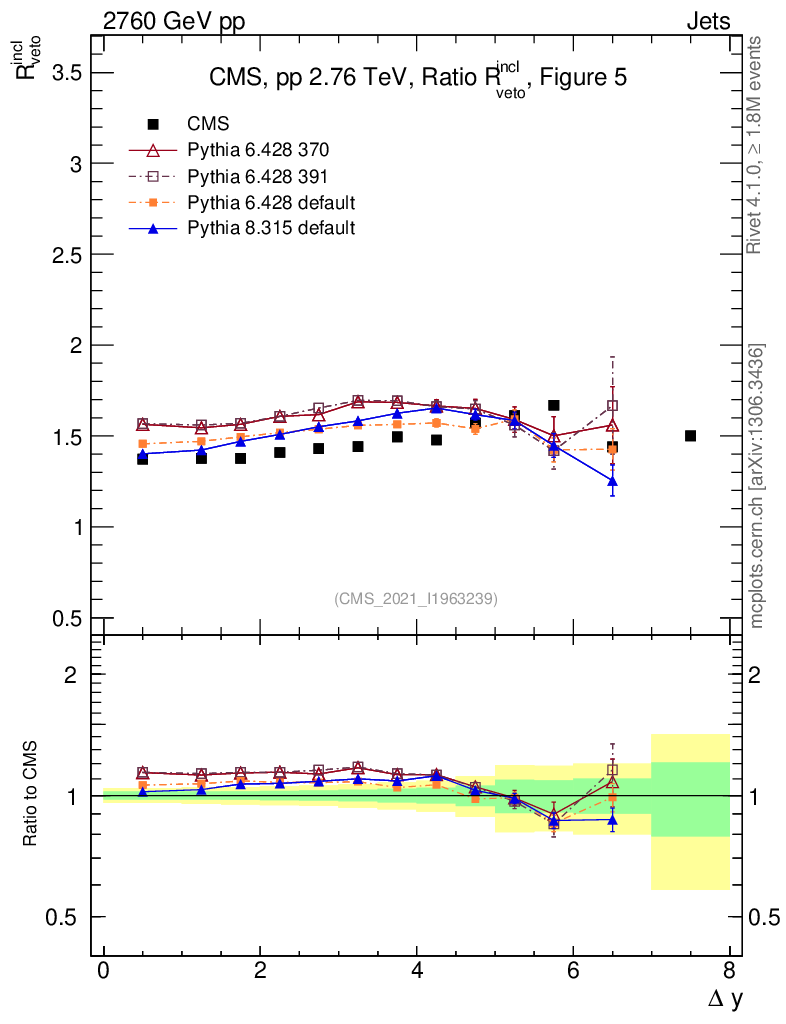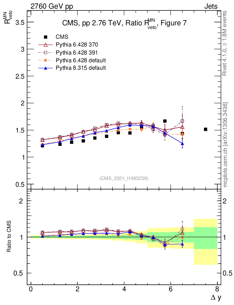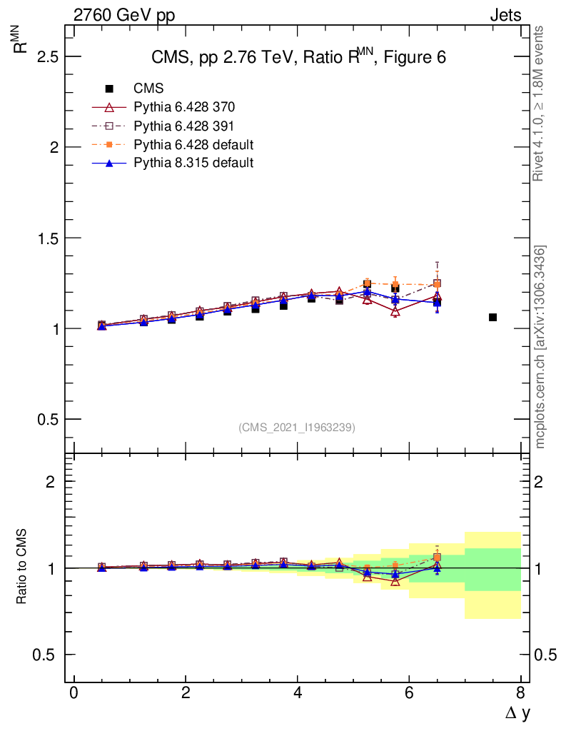 Plot of jj.dy_jj.dy in 2760 GeV pp collisions