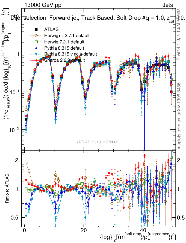 Plot of softdrop.rho in 13000 GeV pp collisions