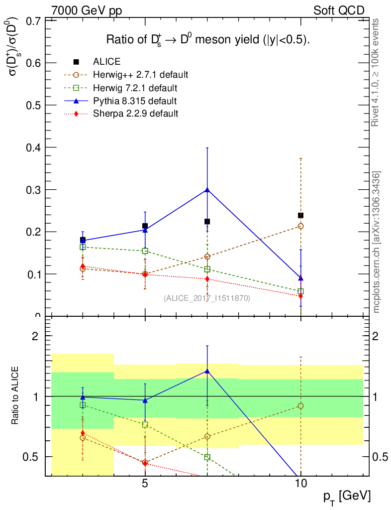 Soft QCD (inelastic) : Identified Particles : Ratios : Ds+/D0 vs pT