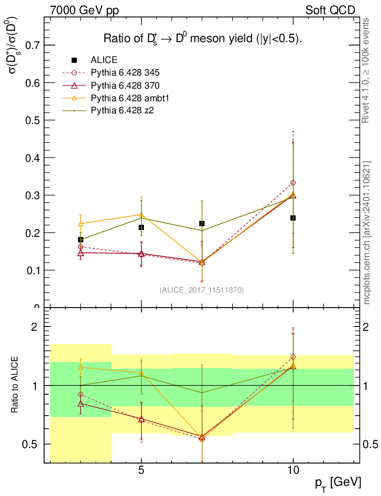 Soft QCD (inelastic) : Identified Particles : Ratios : Ds+/D0 vs pT