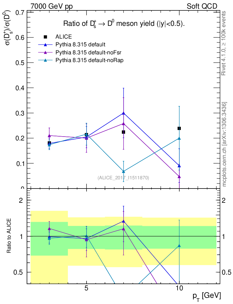 Soft QCD (inelastic) : Identified Particles : Ratios : Ds+/D0 vs pT