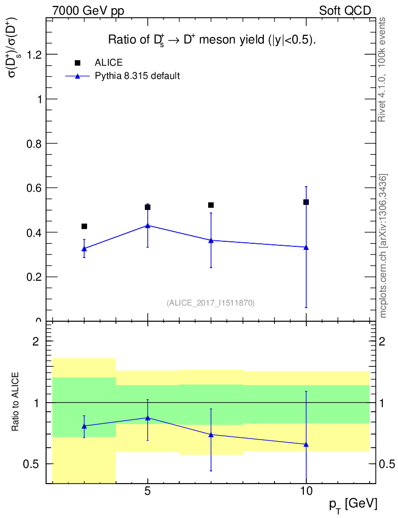 Soft QCD (inelastic) : Identified Particles : Ratios : Ds+/D+ vs pT