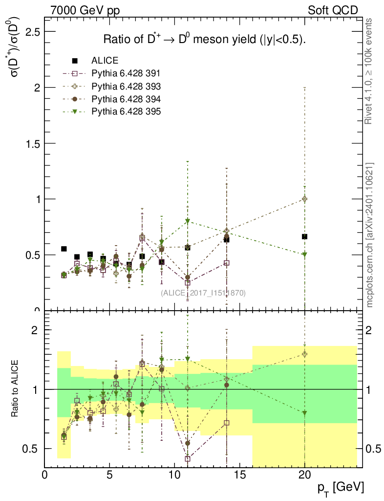 Soft QCD (inelastic) : Identified Particles : Ratios : D*+/D0 vs pT