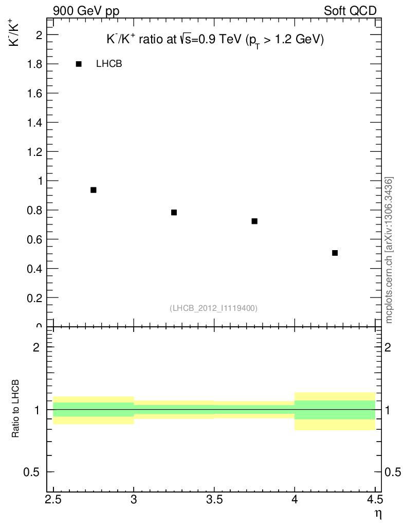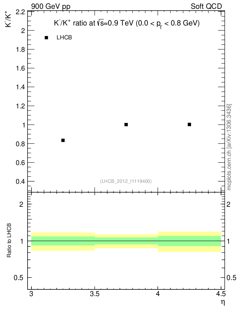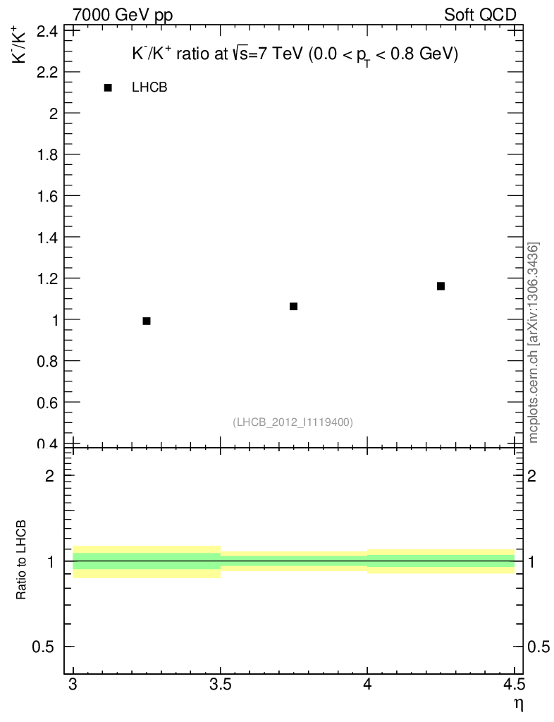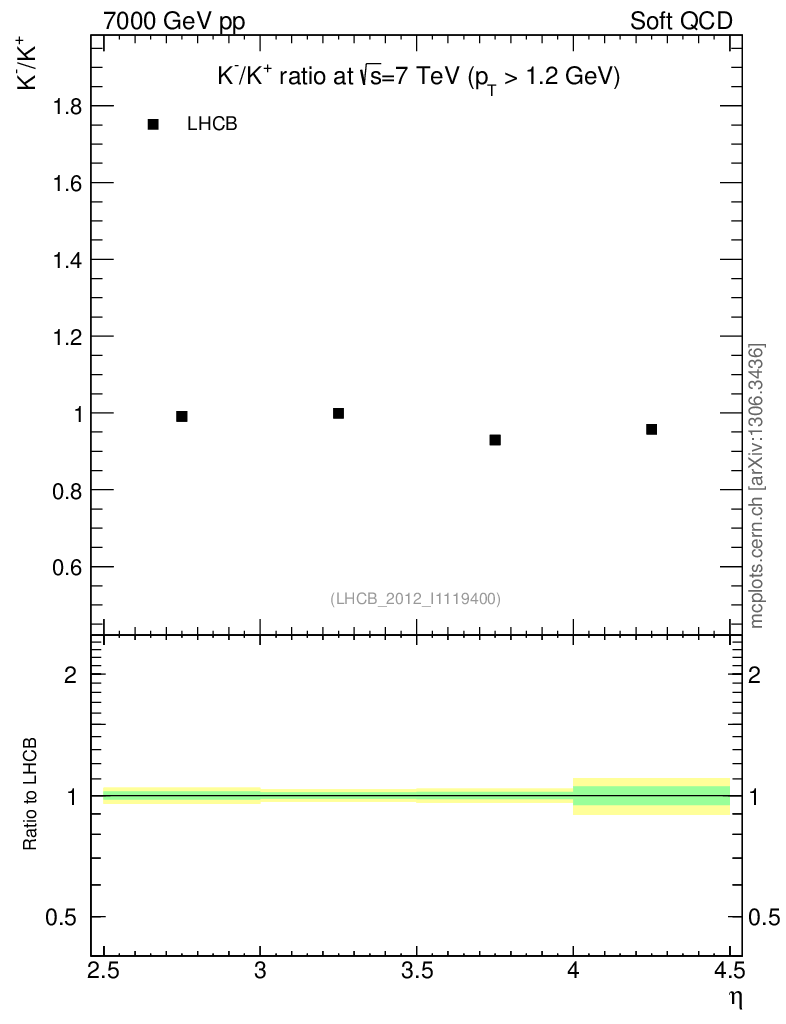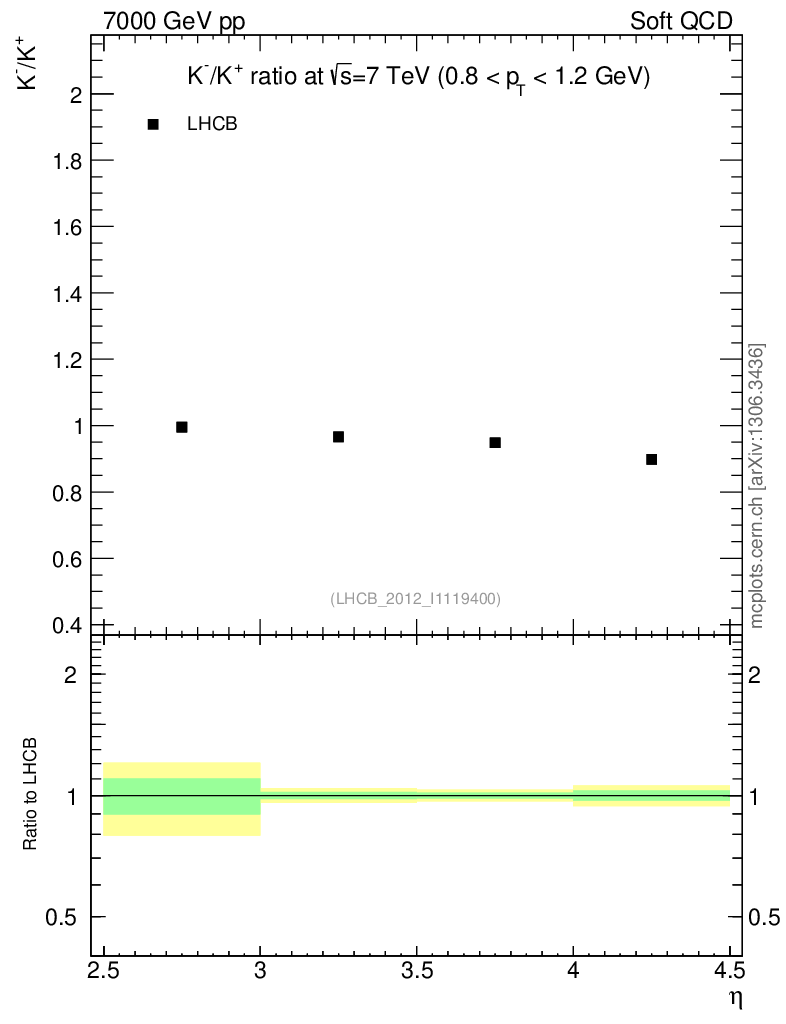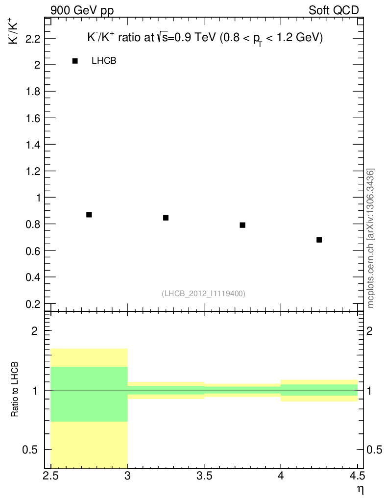 Soft QCD (inelastic) : Identified Particles : Ratios : K-/K+ vs |y|
