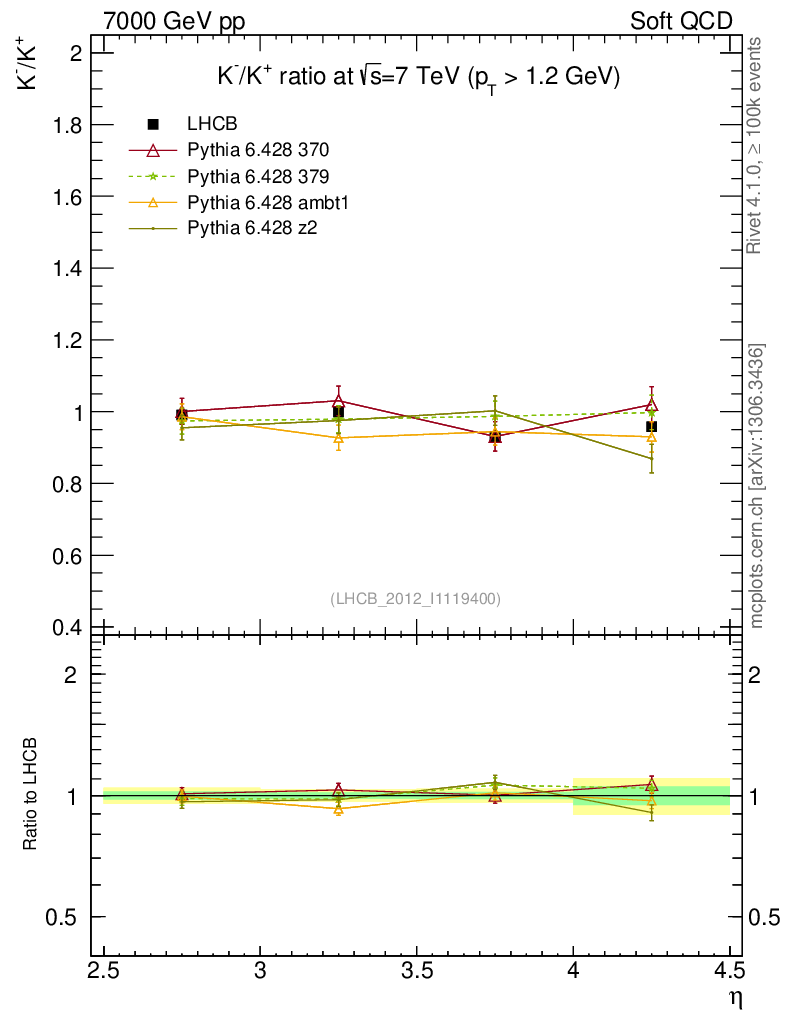 Soft QCD (inelastic) : Identified Particles : Ratios : K-/K+ vs |y|