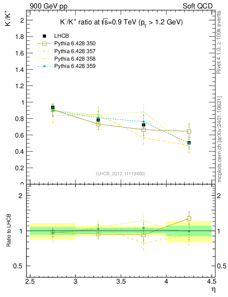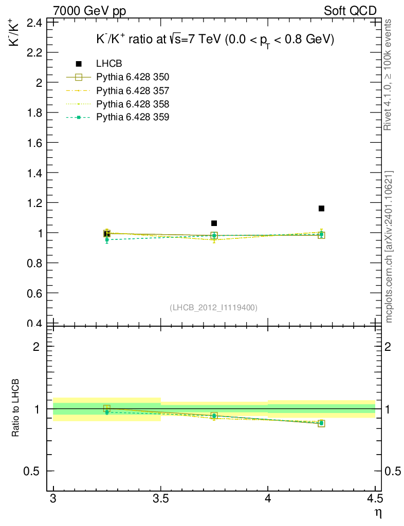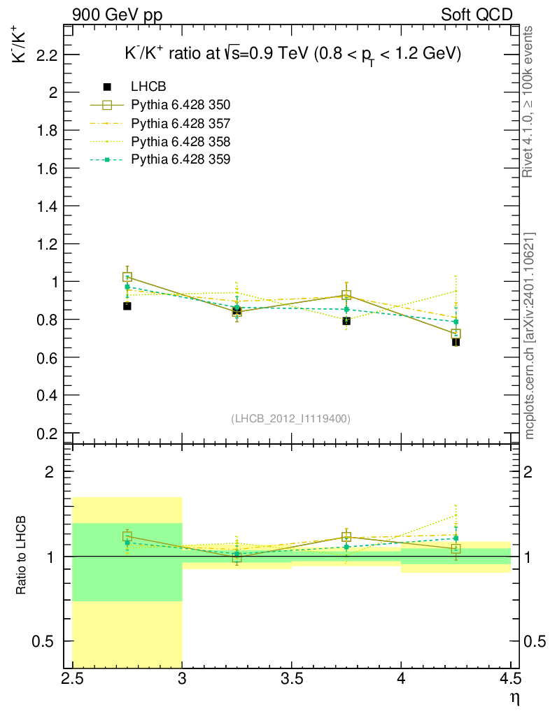 Soft QCD (inelastic) : Identified Particles : Ratios : K-/K+ vs |y|