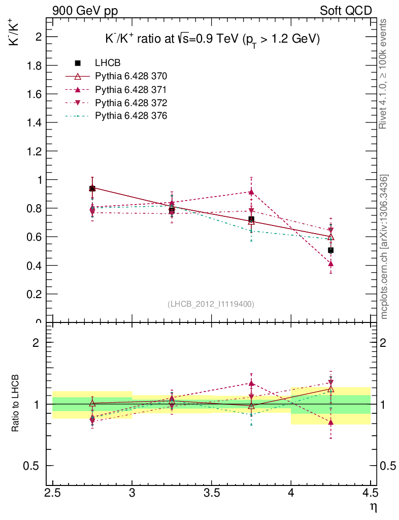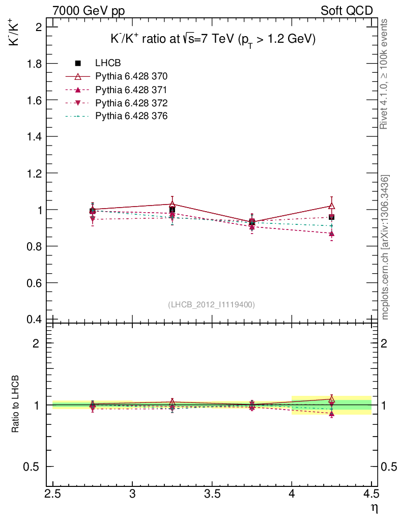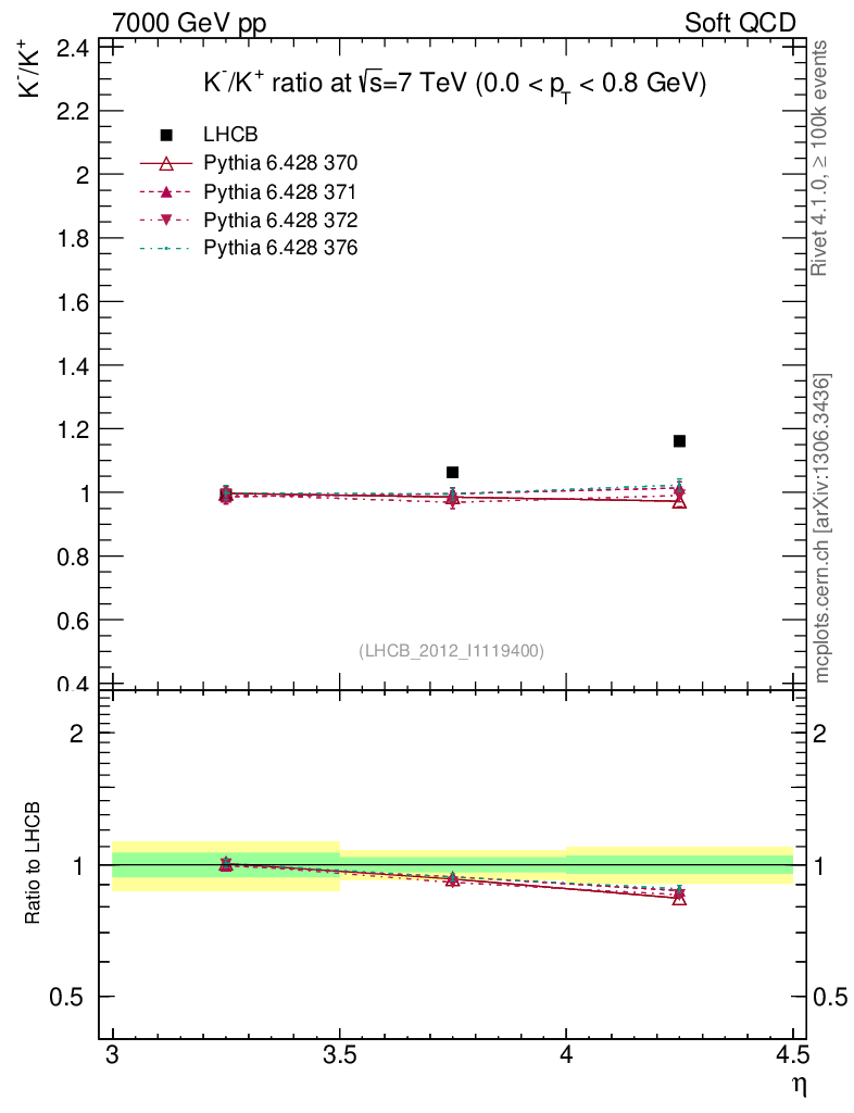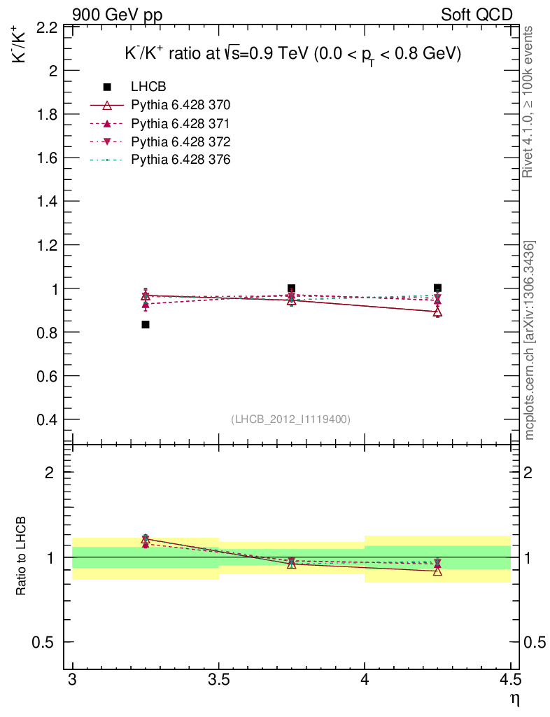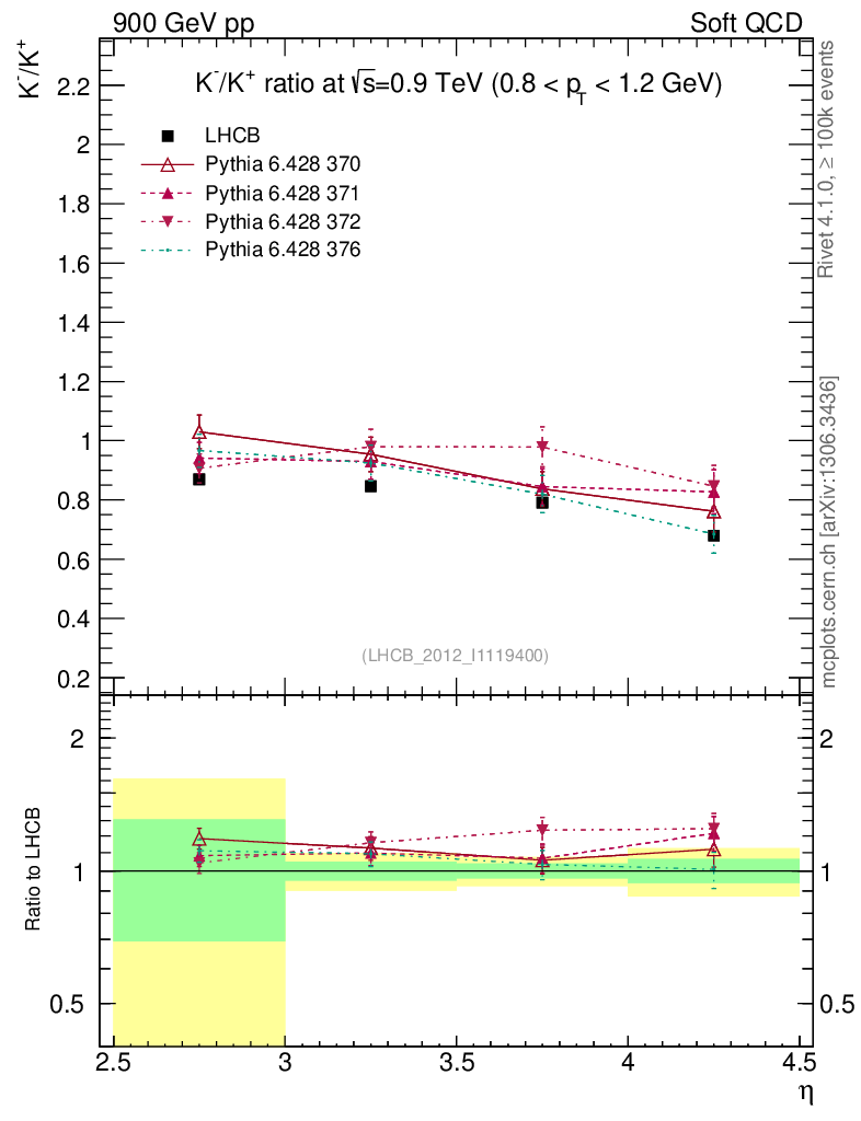 Soft QCD (inelastic) : Identified Particles : Ratios : K-/K+ vs |y|