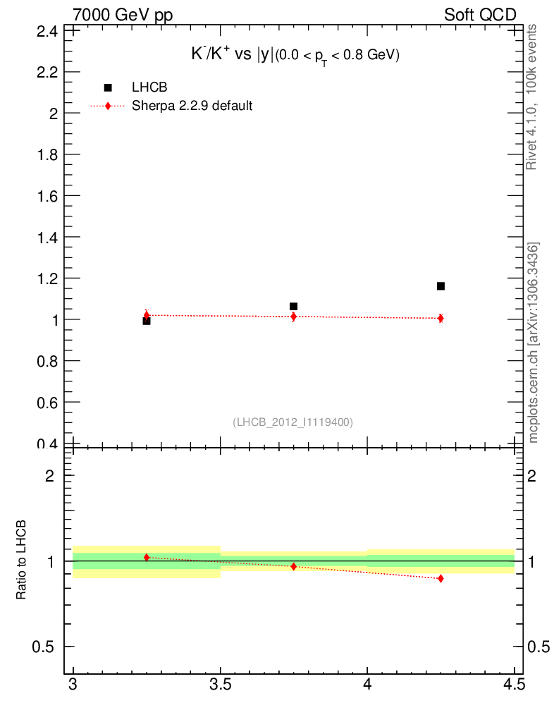 Soft QCD (inelastic) : Identified Particles : Ratios : K-/K+ vs |y|