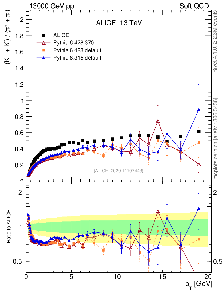Soft QCD (inelastic) : Identified Particles : Ratios : (K-+K+)/(π-+π+) vs pT