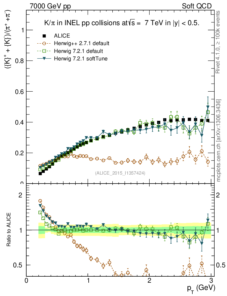 Soft QCD (inelastic) : Identified Particles : Ratios : (K-+K+)/(π-+π+) vs pT
