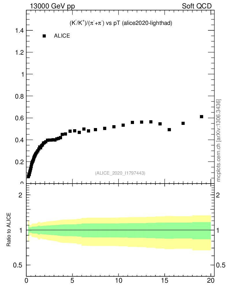 Soft QCD (inelastic) : Identified Particles : Ratios : (K-+K+)/(π-+π+) vs pT