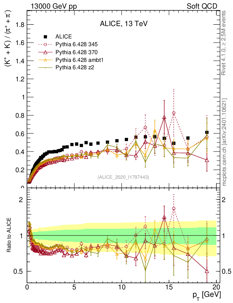 Soft QCD (inelastic) : Identified Particles : Ratios : (K-+K+)/(π-+π+) vs pT