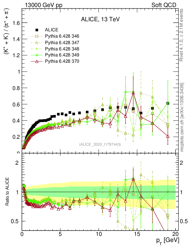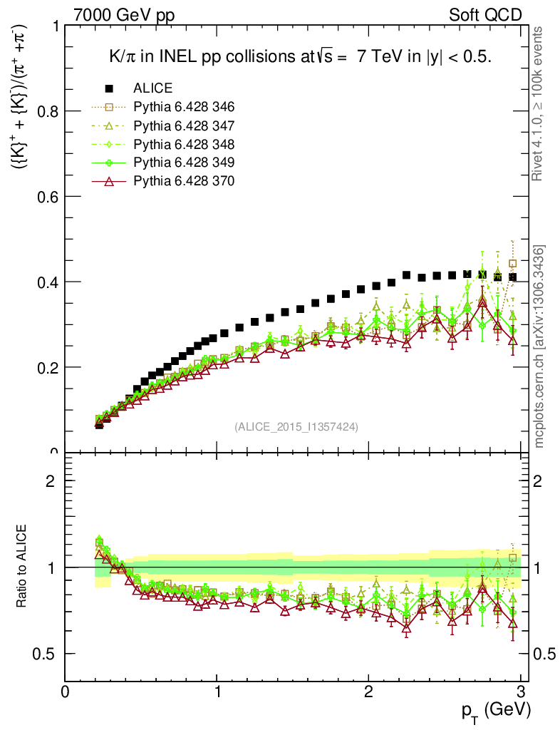 Soft QCD (inelastic) : Identified Particles : Ratios : (K-+K+)/(π-+π+) vs pT