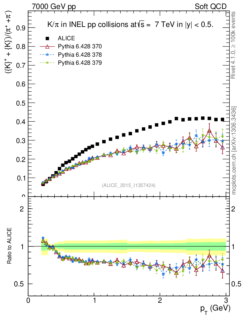 Soft QCD (inelastic) : Identified Particles : Ratios : (K-+K+)/(π-+π+) vs pT