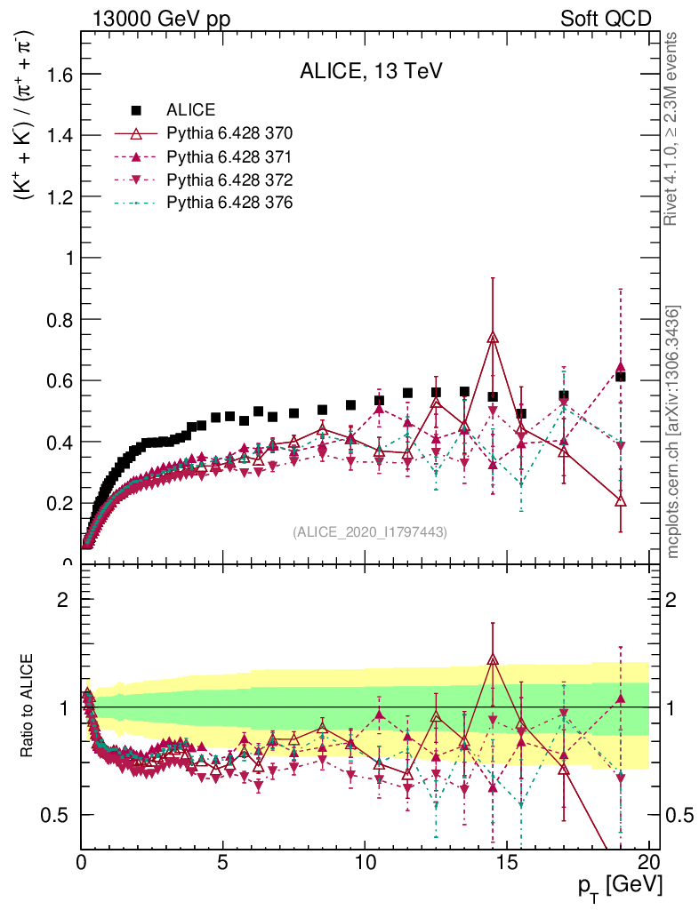 Soft QCD (inelastic) : Identified Particles : Ratios : (K-+K+)/(π-+π+) vs pT