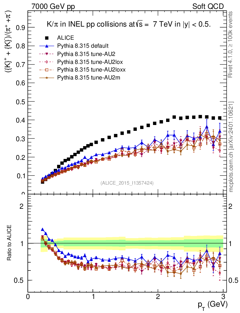 Soft QCD (inelastic) : Identified Particles : Ratios : (K-+K+)/(π-+π+) vs pT
