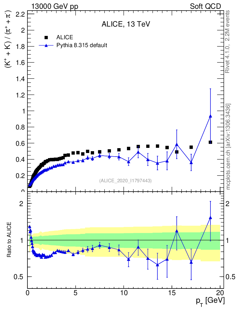 Soft QCD (inelastic) : Identified Particles : Ratios : (K-+K+)/(π-+π+) vs pT