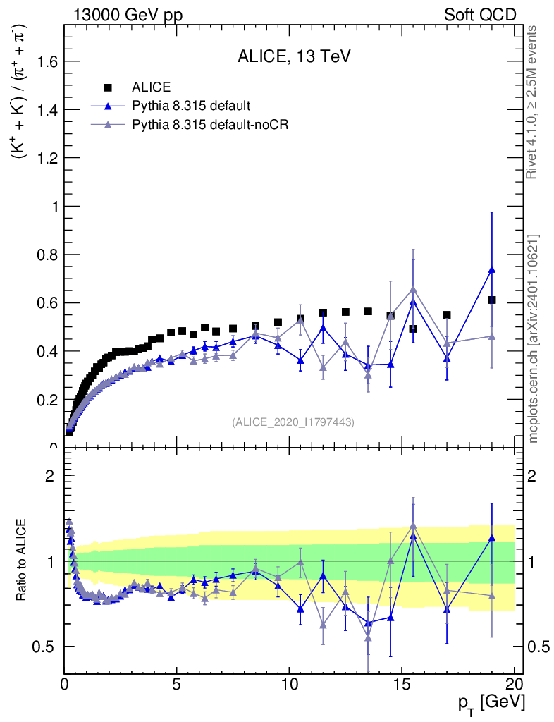 Soft QCD (inelastic) : Identified Particles : Ratios : (K-+K+)/(π-+π+) vs pT