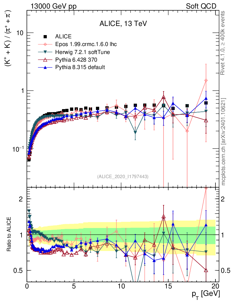 Soft QCD (inelastic) : Identified Particles : Ratios : (K-+K+)/(π-+π+) vs pT