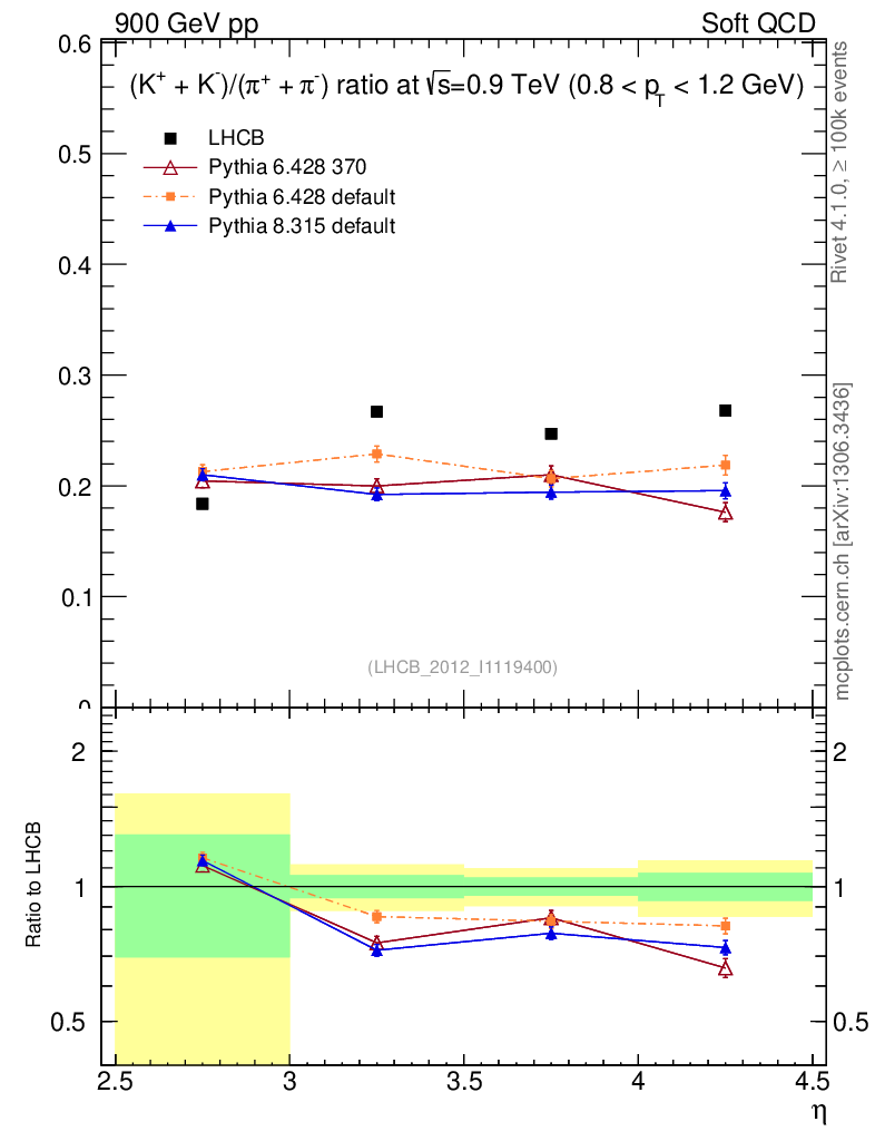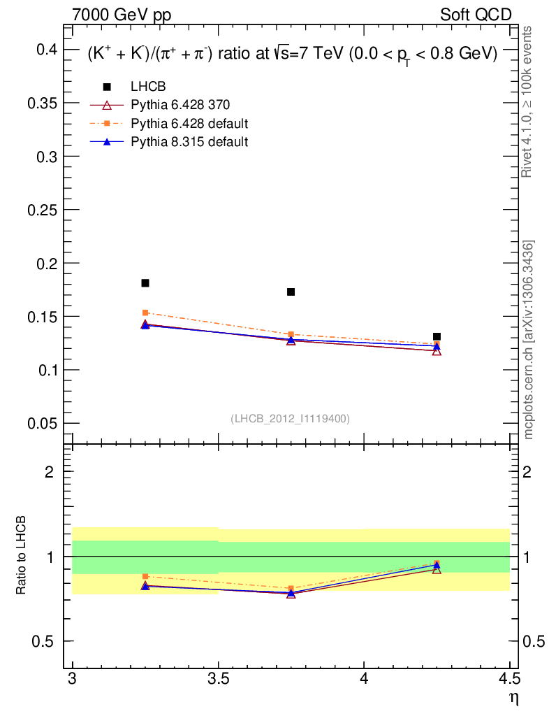 Soft QCD (inelastic) : Identified Particles : Ratios : (K-+K+)/(π-+π+) vs |y|