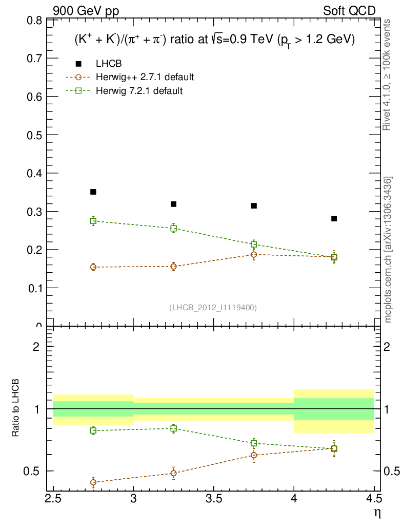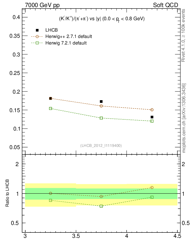 Soft QCD (inelastic) : Identified Particles : Ratios : (K-+K+)/(π-+π+) vs |y|