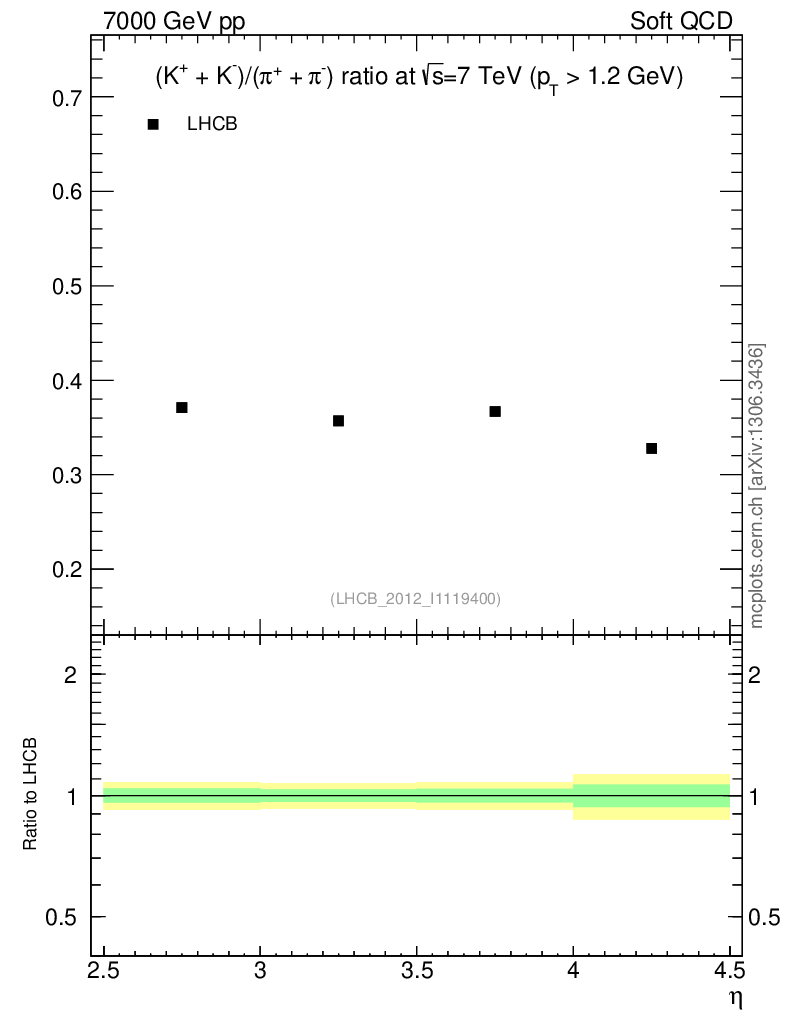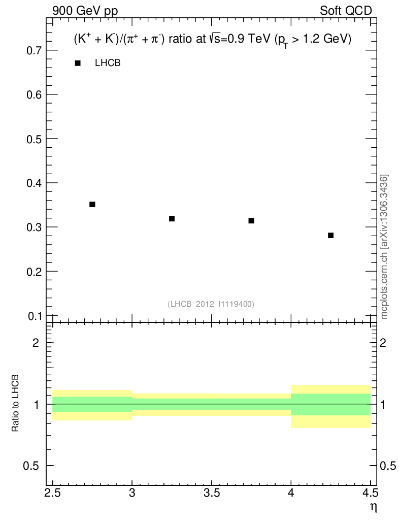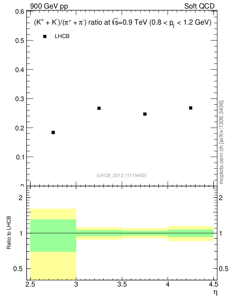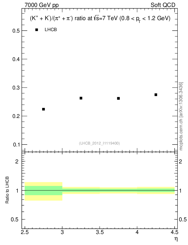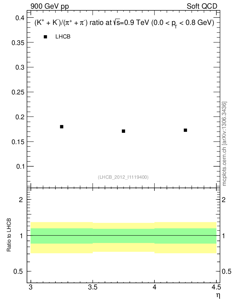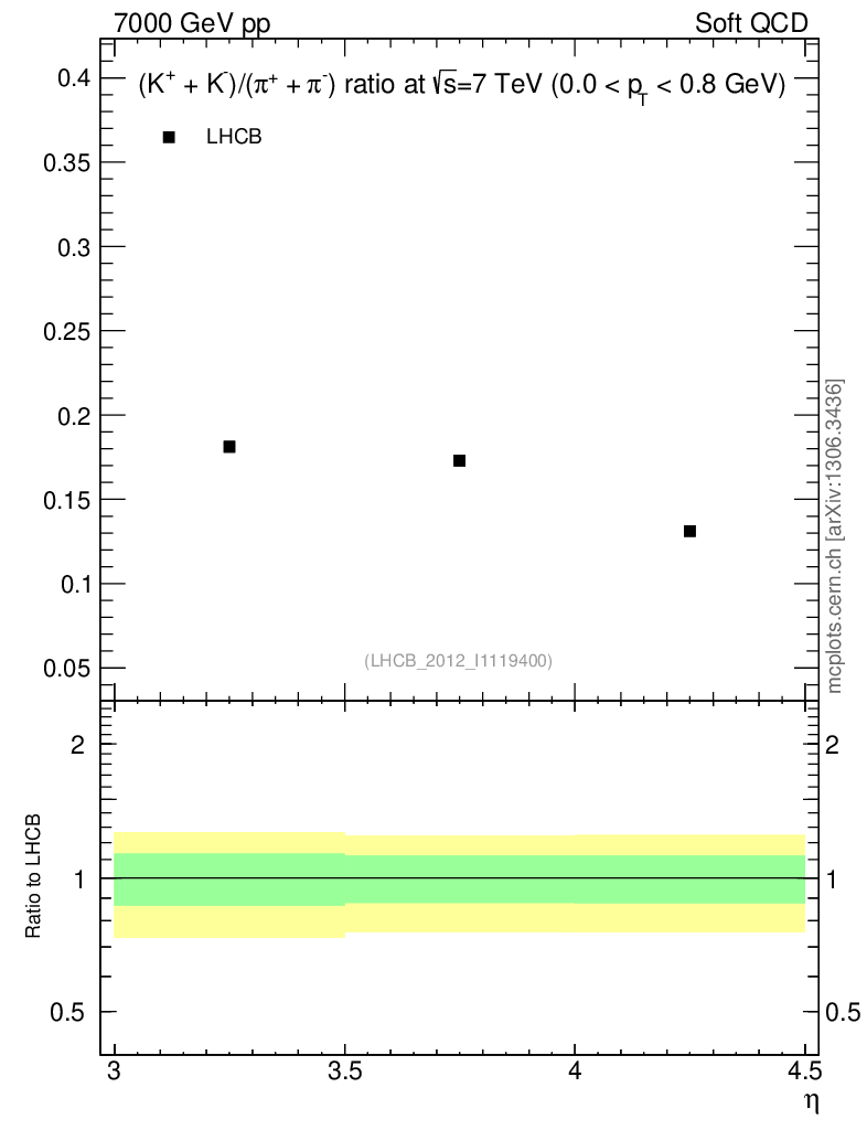 Soft QCD (inelastic) : Identified Particles : Ratios : (K-+K+)/(π-+π+) vs |y|