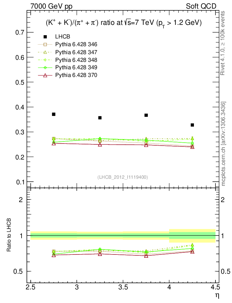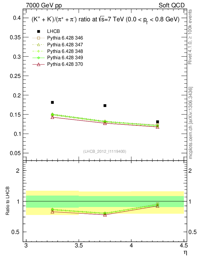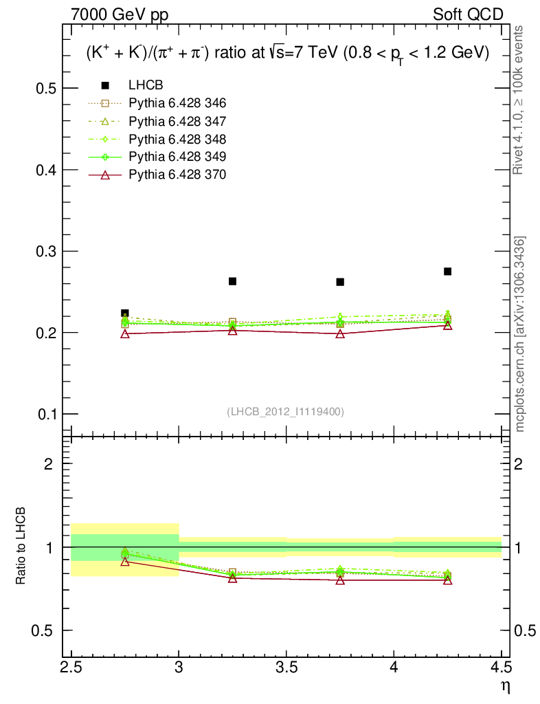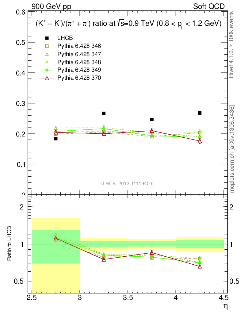 Soft QCD (inelastic) : Identified Particles : Ratios : (K-+K+)/(π-+π+) vs |y|