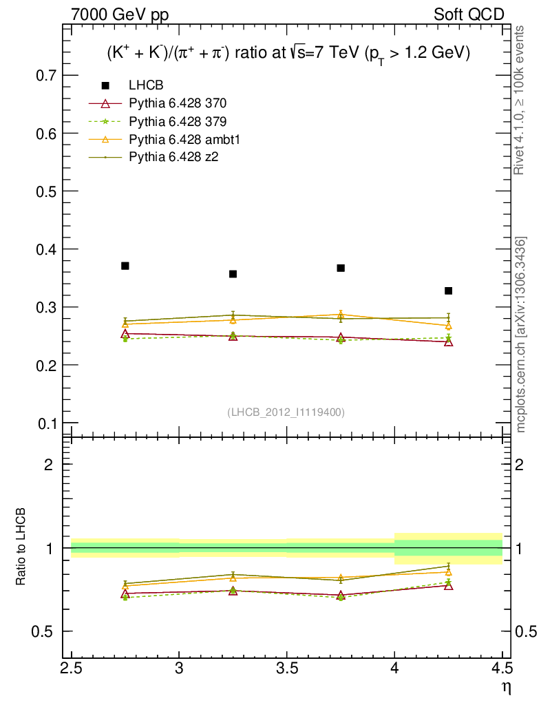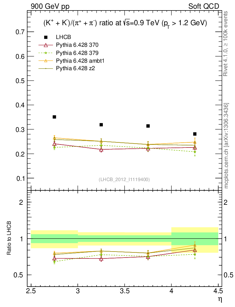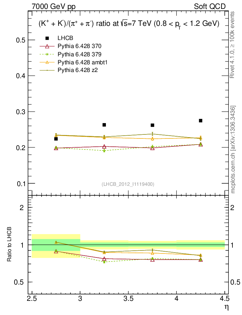 Soft QCD (inelastic) : Identified Particles : Ratios : (K-+K+)/(π-+π+) vs |y|