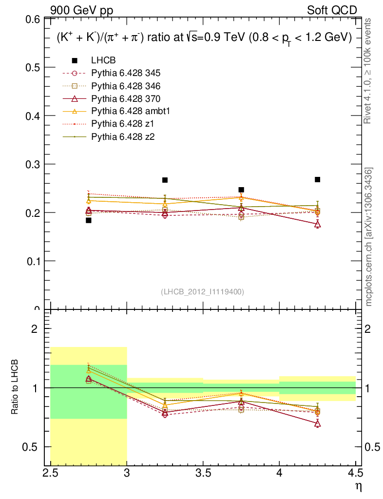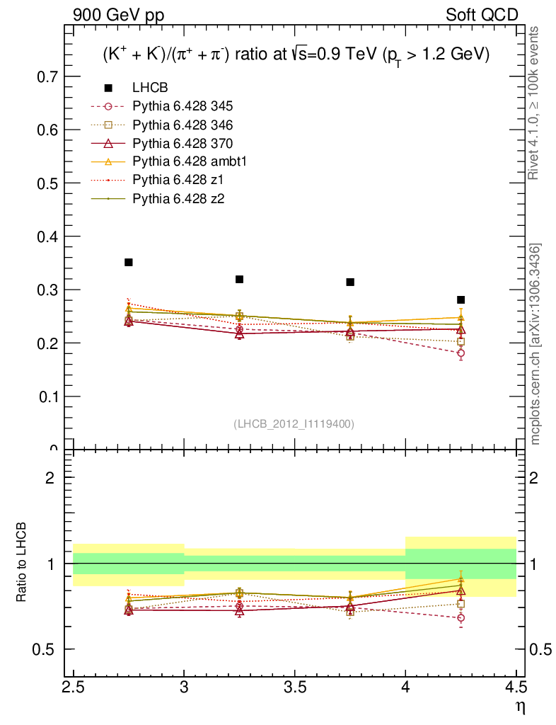Soft QCD (inelastic) : Identified Particles : Ratios : (K-+K+)/(π-+π+) vs |y|